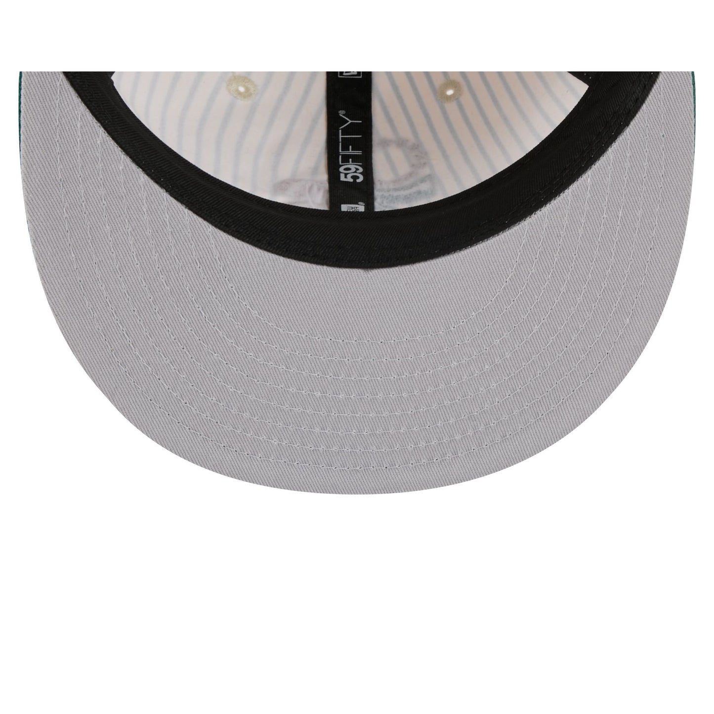 The Just Caps Seersucker Philadelphia 76ers Retro Crown 59FIFTY Fitted Cap features an embroidered 76ers green and bronze logo at the front panels against a seersucker fabrication throughout the cap. Additional details include matching NBA Logoman at the rear and a gray undervisor.