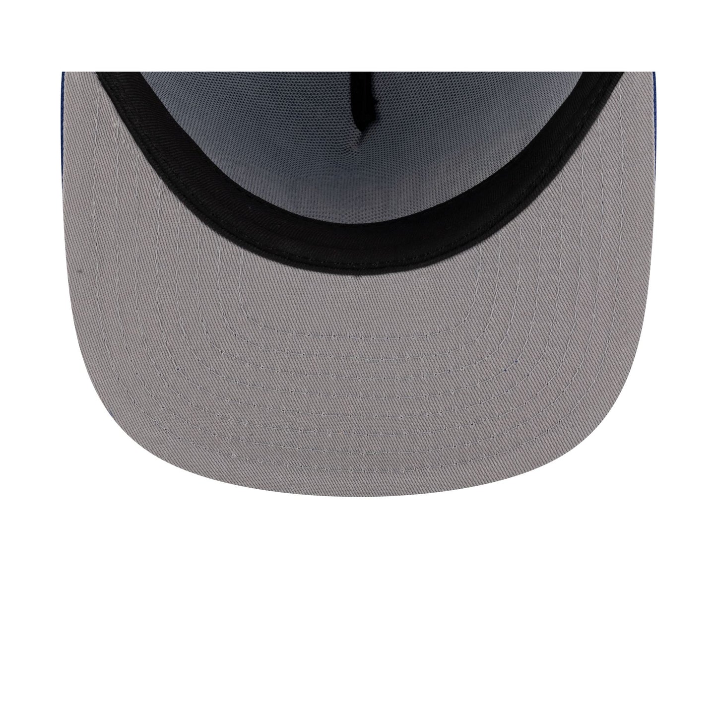 The Just Caps Sky Blue Chicago Cubs 59FIFTY A-Frame Fitted Cap features an embroidered Cubs Cooperstown logo at the front panels with a matching MLB Batterman logo at the rear. Additional details include a Wrigley Field patch at the right-wear side and a gray undervisor.