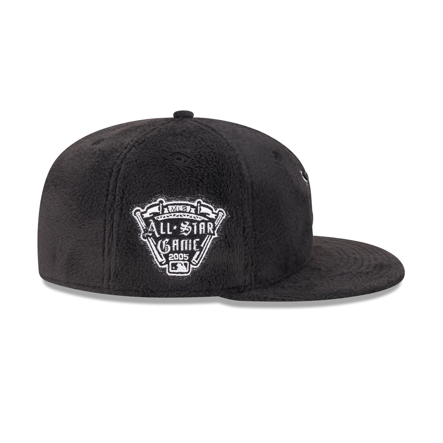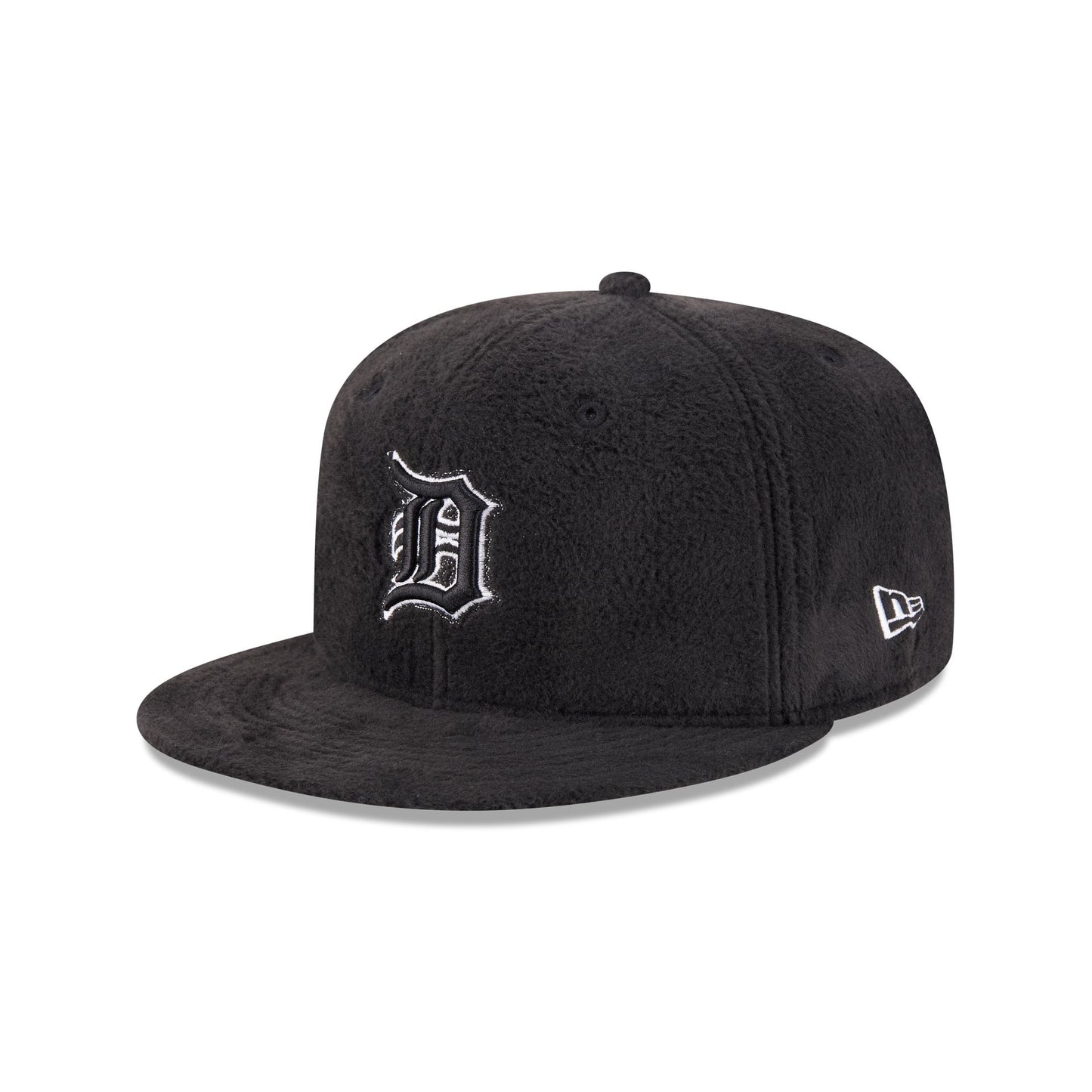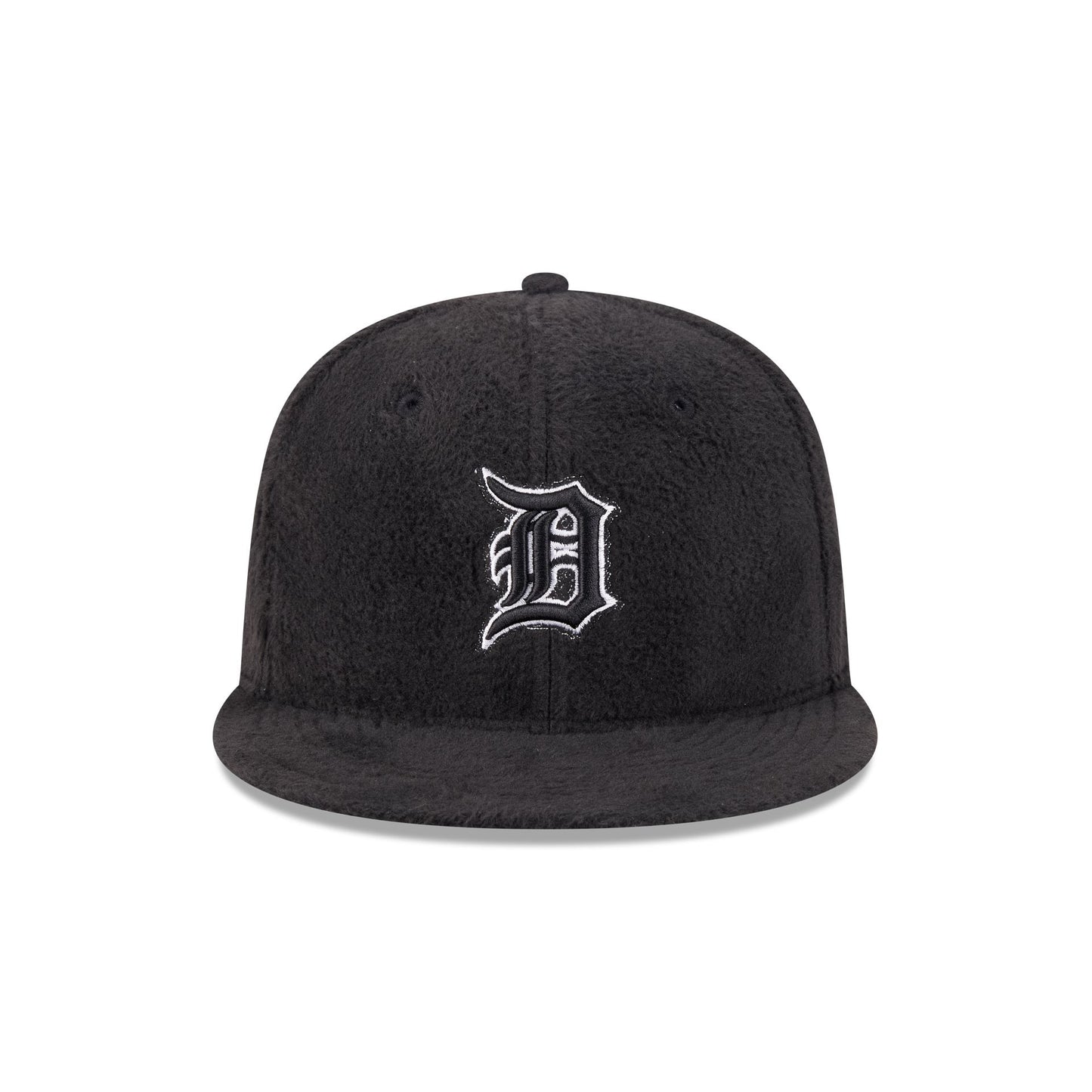 The Just Caps Static Logo Detroit Tigers 59FIFTY Fitted Cap features a black and white embroidered Tigers logo at the front panels with a matching MLB Batterman logo at the rear. Additional details include a 2005 All-Star Game patch at the right-wear side with a black fleece allover fabrication and a gray undervisor.
