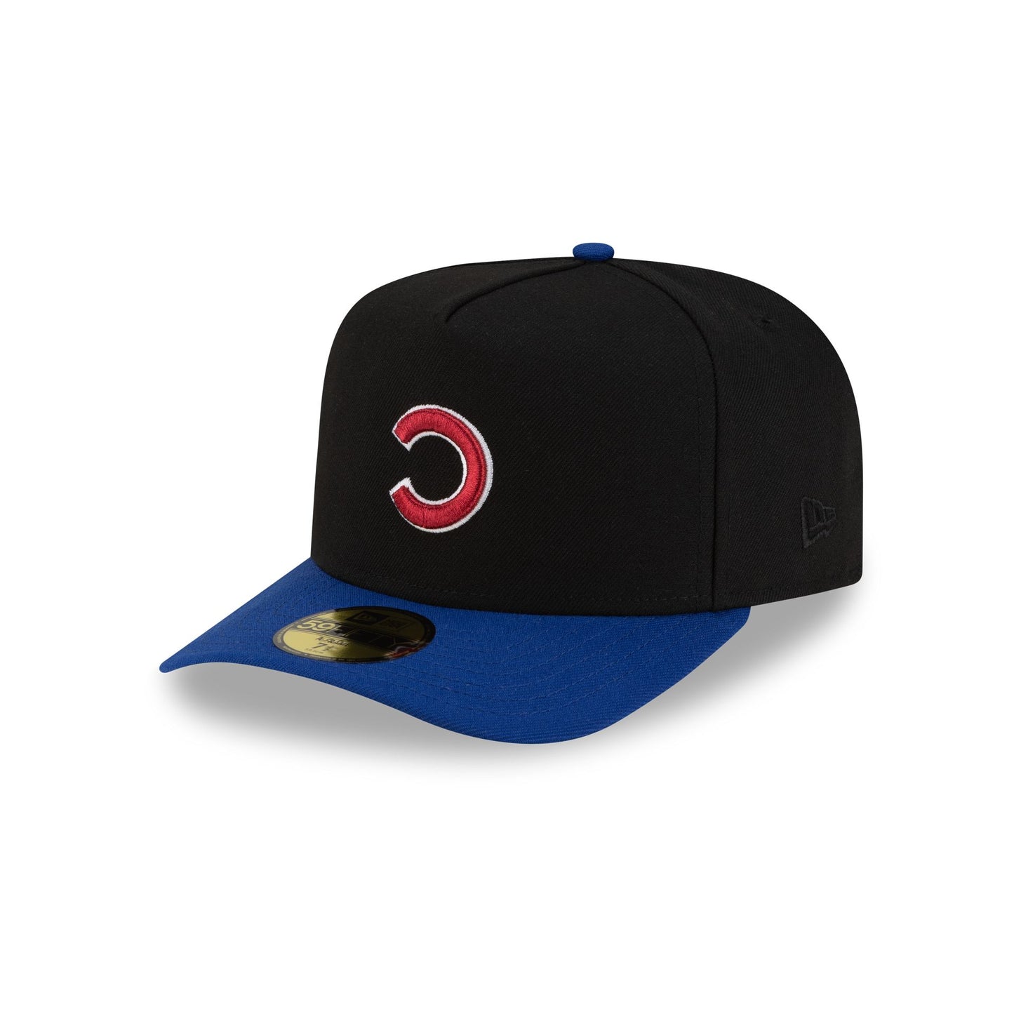 The Just Caps Upside Down Logo Chicago Cubs 59FIFTY A-Frame Fitted Cap features an embroidered upside down Cubs logo at the front panels with a Wrigley Field patch at the right-wear side. Additional details include a matching MLB Batterman logo at the rear and a gray undervisor.