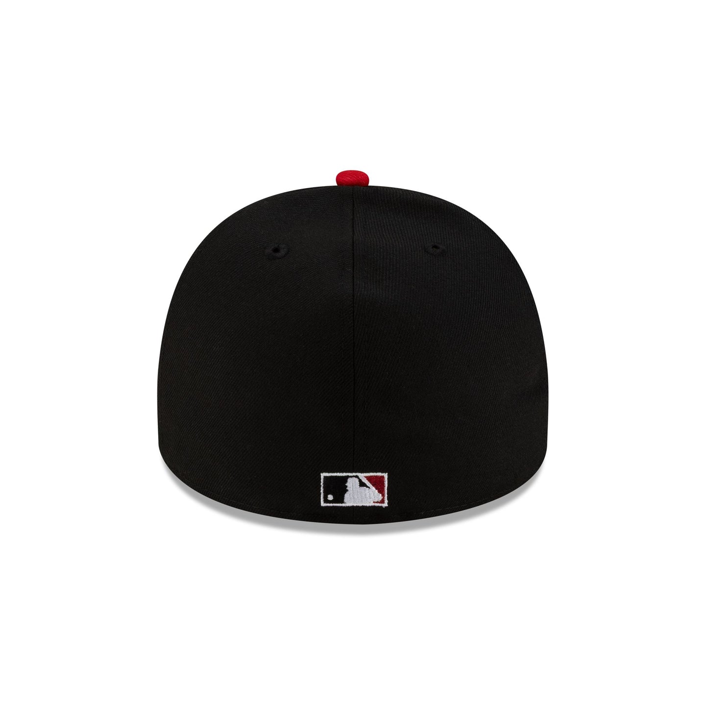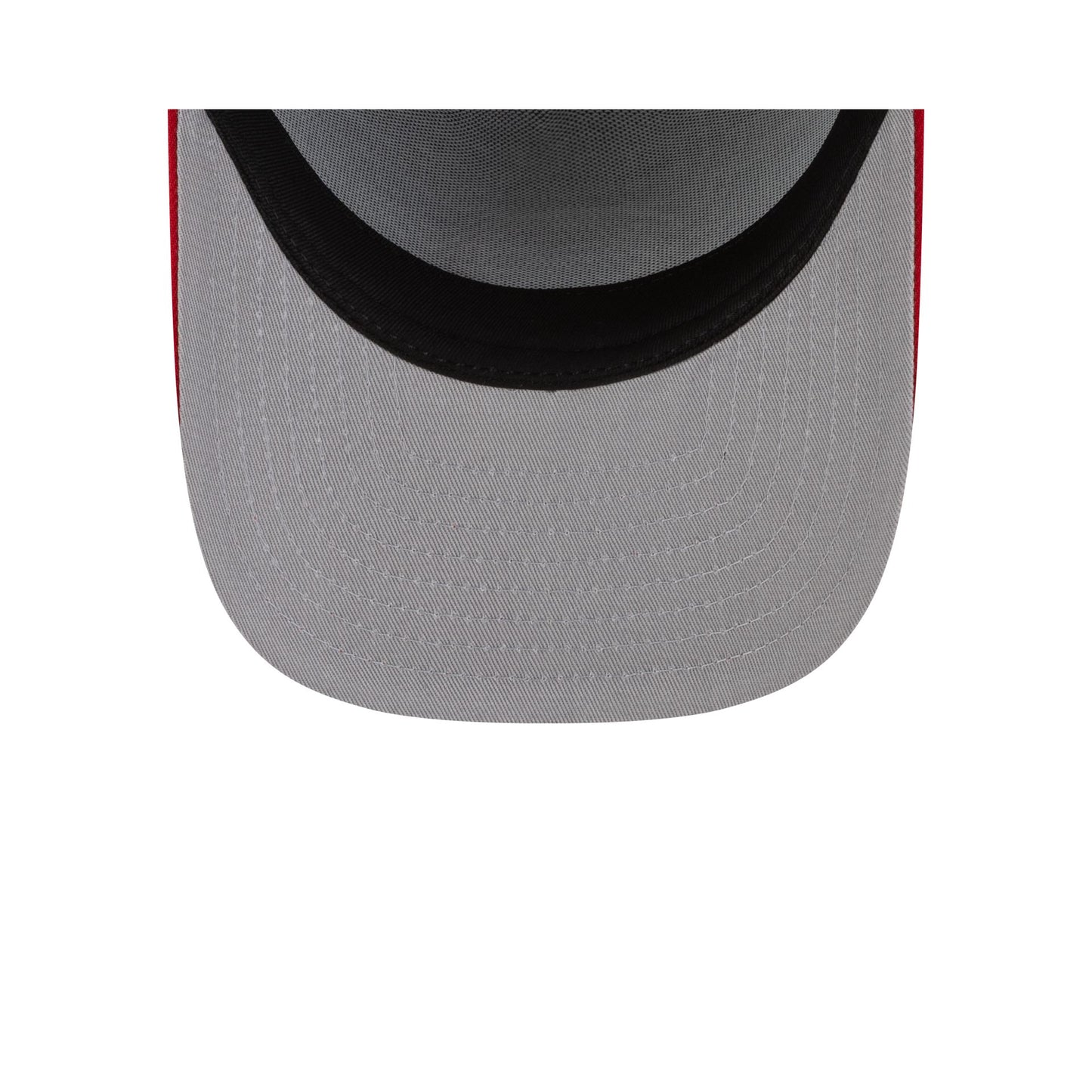 The Just Caps Upside Down Logo Cincinnati Reds 59FIFTY A-Frame Fitted Cap features an embroidered upside down Reds logo at the front panels with a 150th Anniversary patch at the right-wear side. Additional details include a matching MLB Batterman logo at the rear and a gray undervisor.