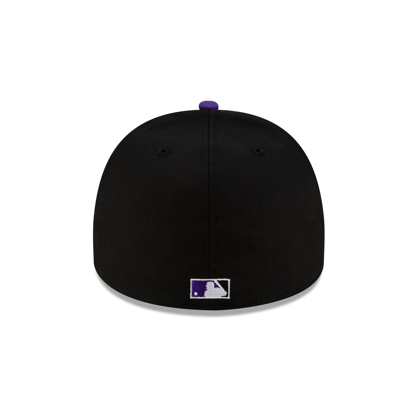 The Just Caps Upside Down Logo Colorado Rockies 59FIFTY A-Frame Fitted Cap features an embroidered upside down Rockies logo at the front panels with a 30th Anniversary patch at the right-wear side. Additional details include a matching MLB Batterman logo at the rear and a gray undervisor.