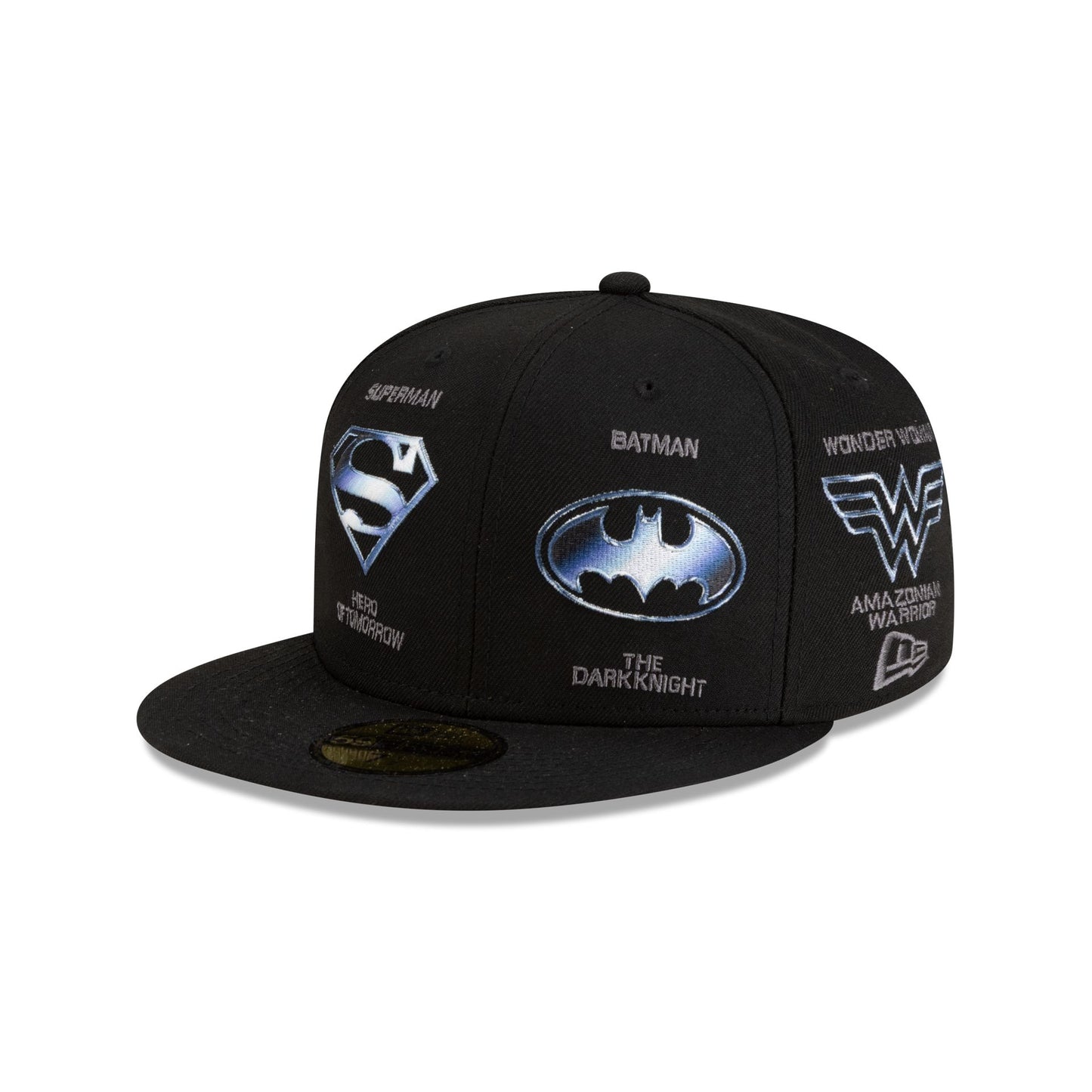 The Justice League of America 59FIFTY Fitted Cap features embroidered Justice League Justice League logos throughout the cap with a DC Comics logo at the rear and a blue undervisor.