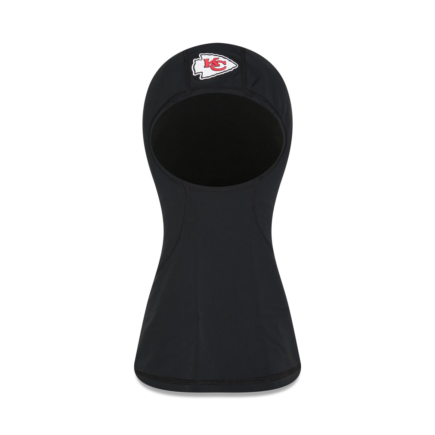 The Kansas City Chiefs 2025 Sideline Cold Weather Balaclava features a heat transfer Chiefs logo at the front with a New Era Flag logo at the left-wear side.
