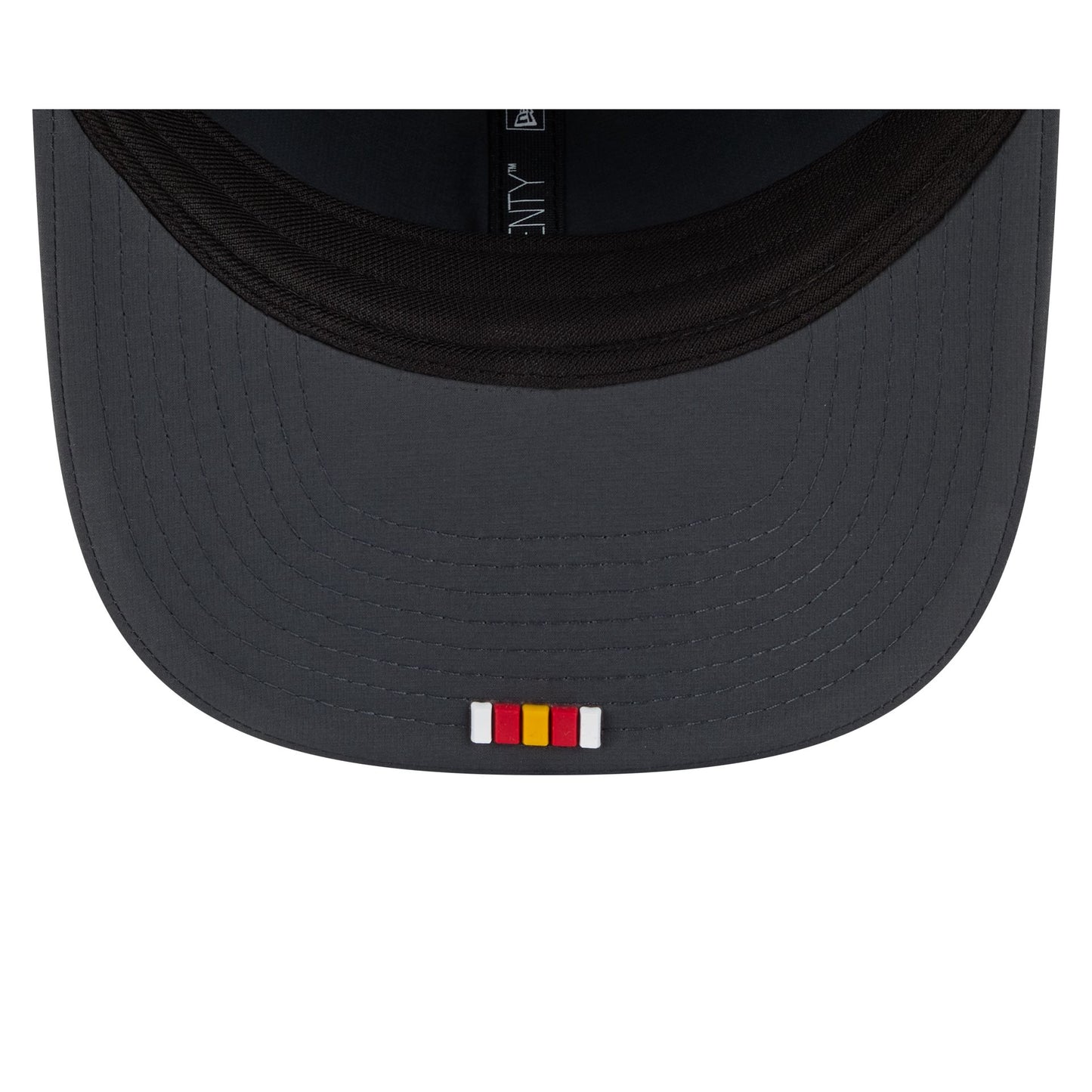 The Kansas City Chiefs 2025 Sideline Cold Weather Steel Clouds 9SEVENTY Stretch-Snap features a sewn-down silicone Chiefs logo patch at the front panels with a water-repellent quill tech fabrication throughout and an insulated crown with a quick-dry cushioned sweatband. Additional details include the Official NFL Shield logo to the right of a soft silicone snapback closure at the rear. The undervisor is accented with a silicone transfer in the team’s colors.