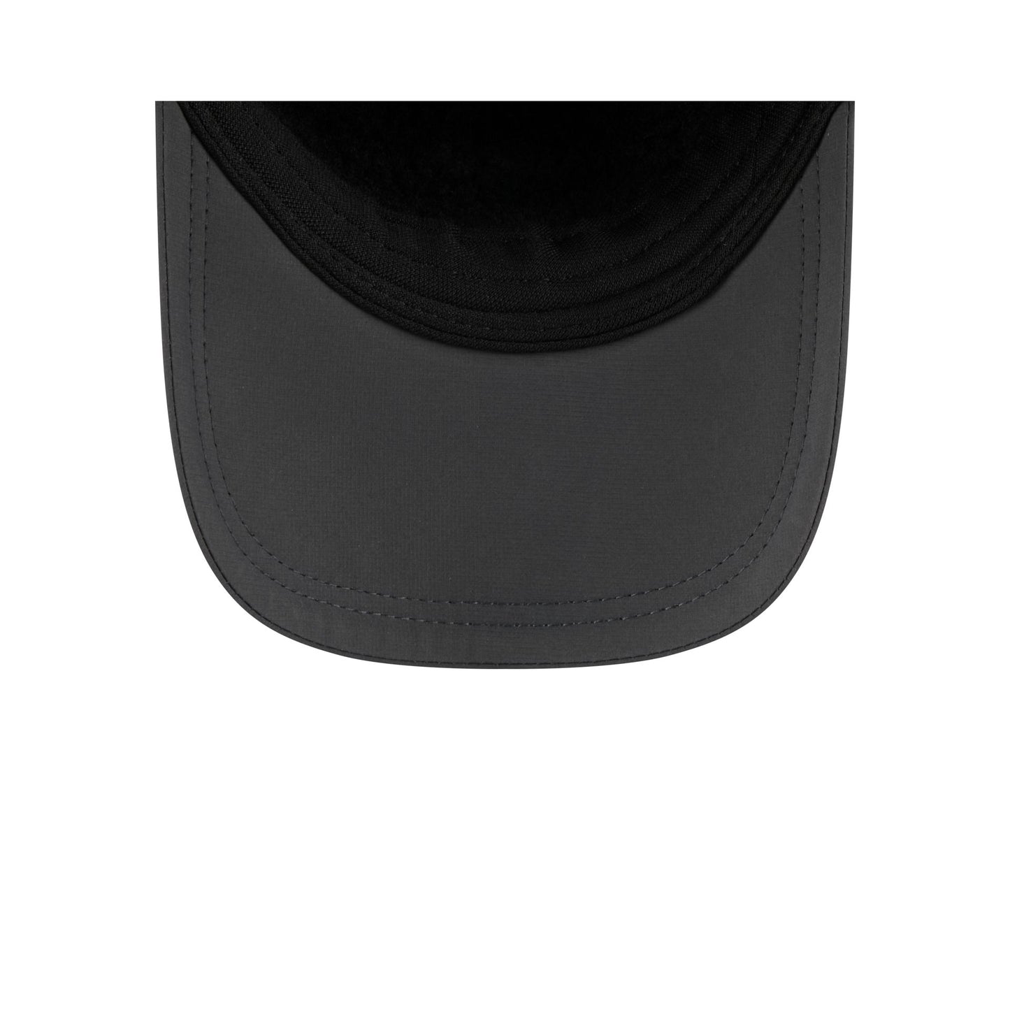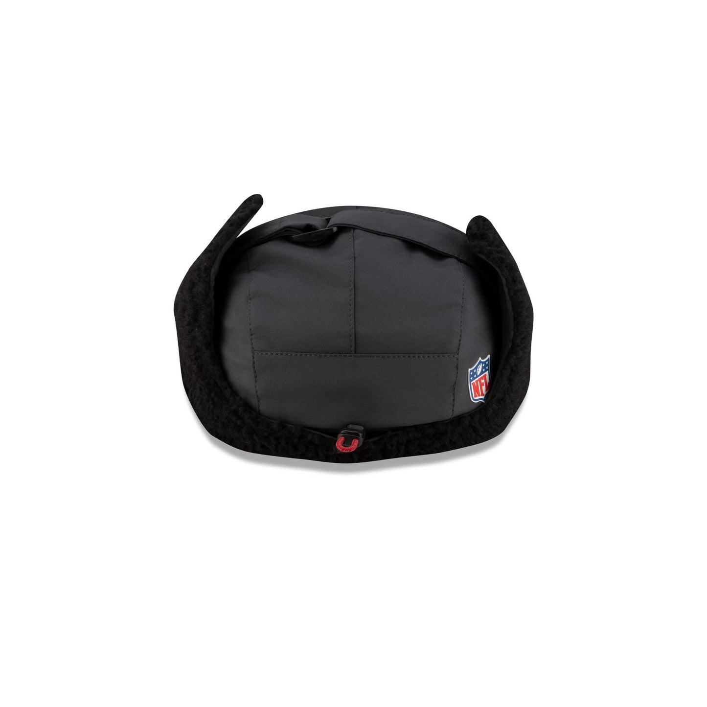 The Kansas City Chiefs 2025 Sideline Cold Weather Steel Clouds Runner Dogear Adjustable Cap features a sewn-down silicone Chiefs logo patch at the front panels with a water-repellent quill tech fabrication throughout with an insulated crown and sherpa lining. Additional details include a buckle strap button secured at the top of the crown that folds down to cover the ears, and an adjustable elastic toggle at the back for a customizable fit.
