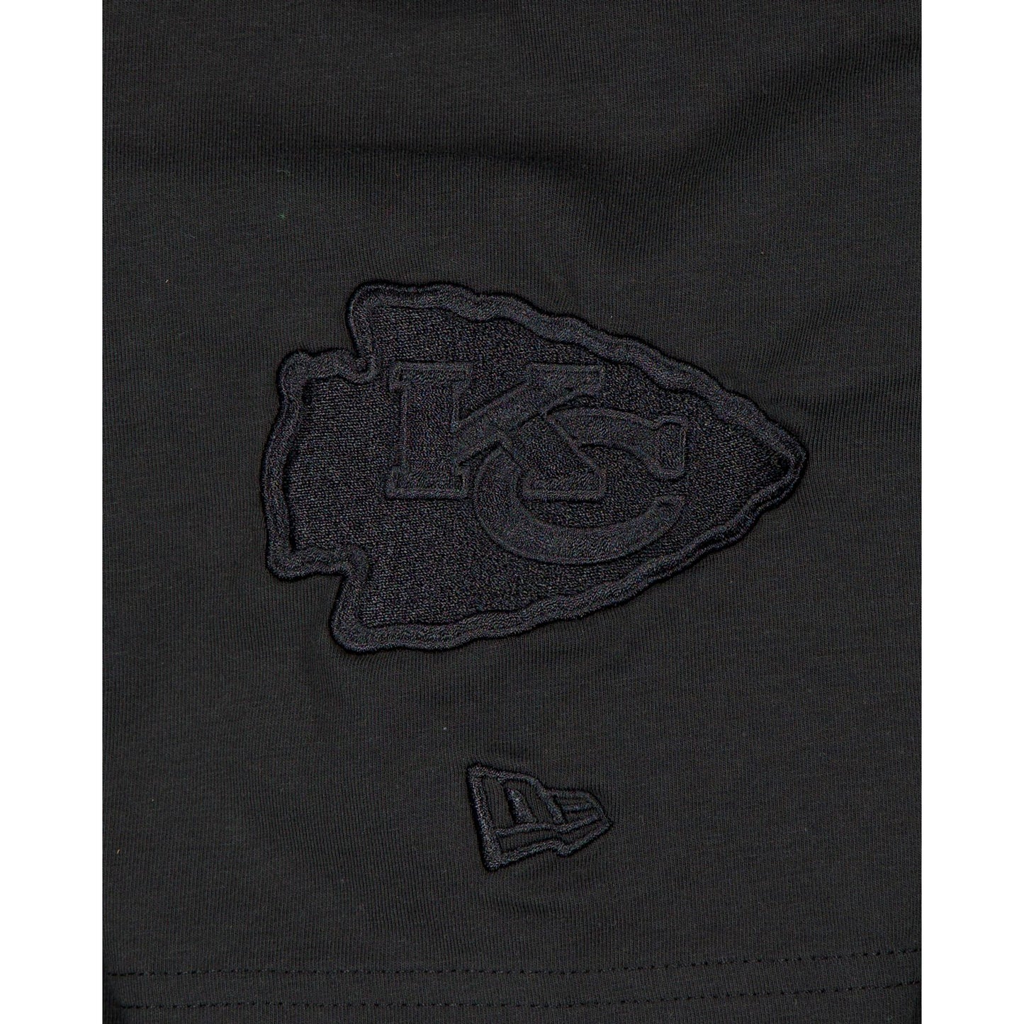 The Kansas City Chiefs Black on Black Logo Select T-Shirt features a satin applique with a tonal stitch Chiefs wordmark at the chest and an embroidered team logo at the left-wear sleeve.