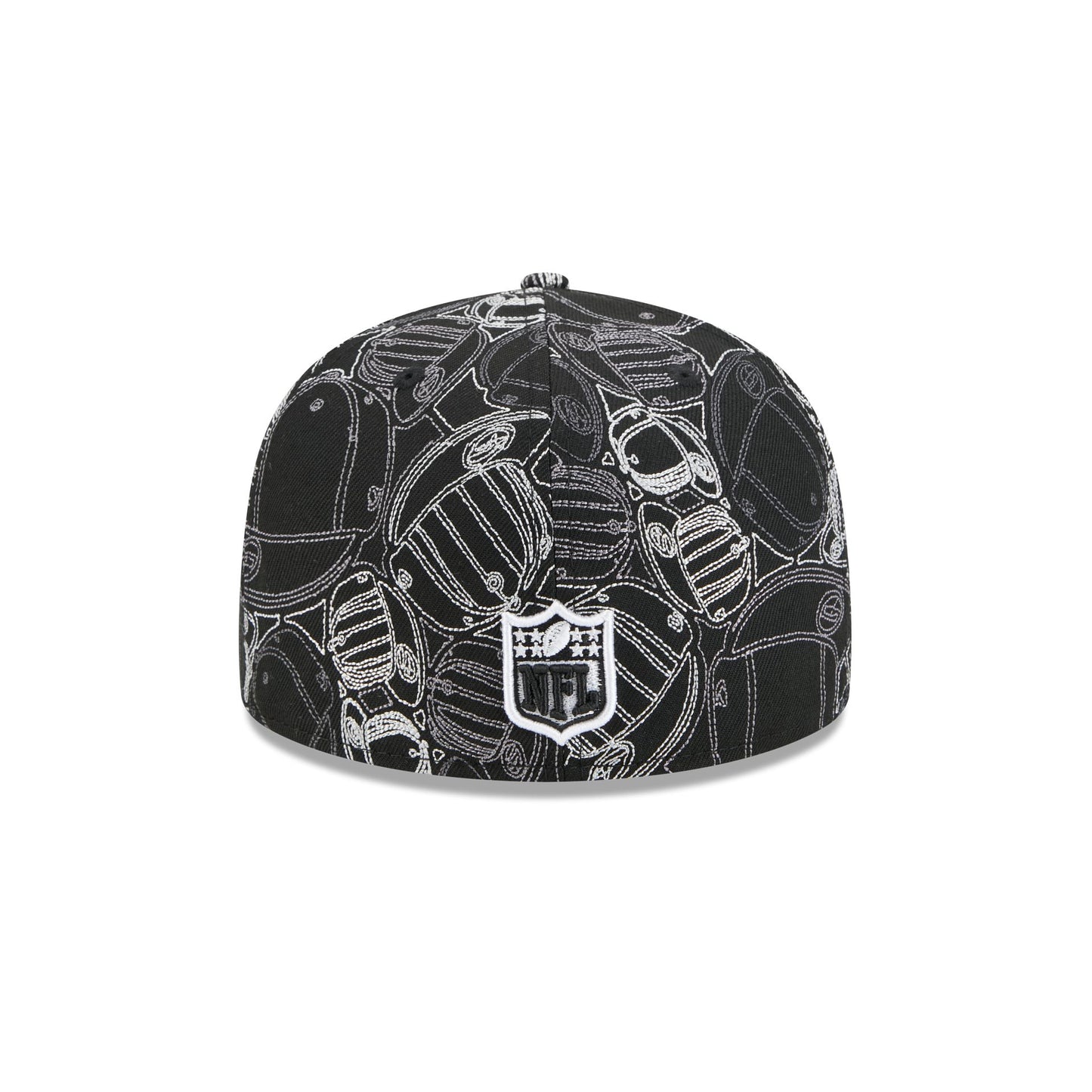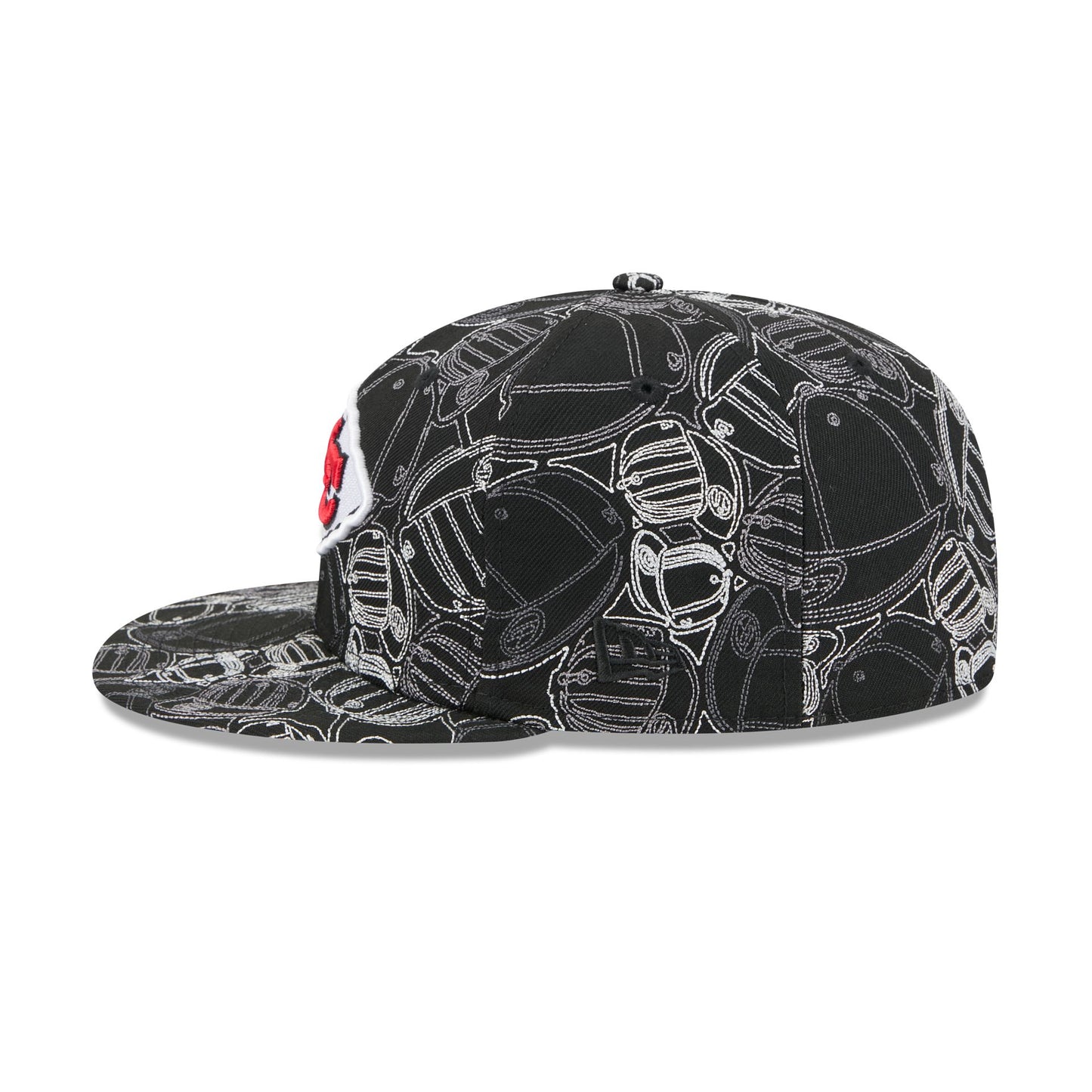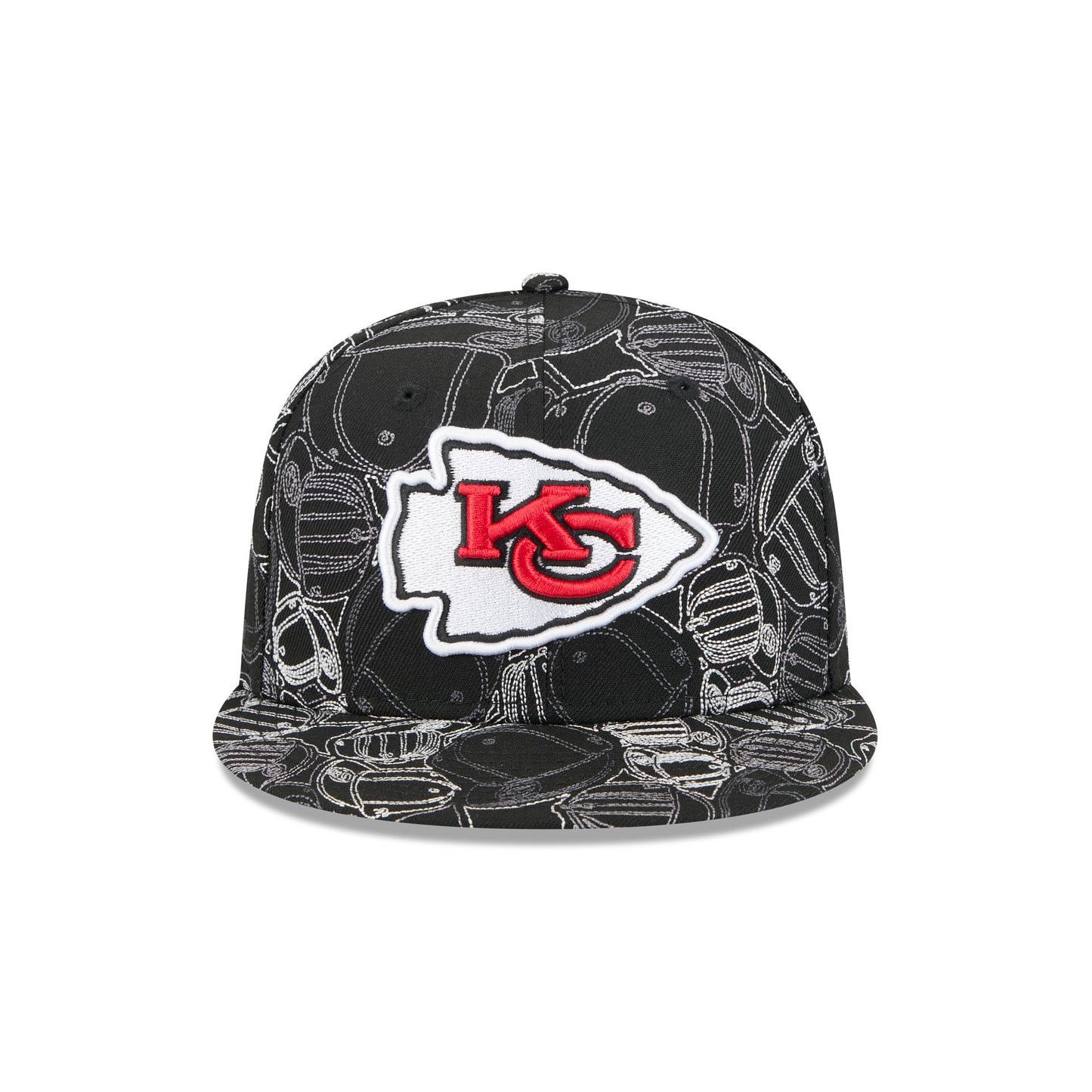 The Kansas City Chiefs Cap Scramble 59FIFTY Fitted Cap features an embroidered Chiefs logo at the front panels with chainstitched allover cap patterned fabrication, an NFL Shield at the rear, and a gray undervisor.