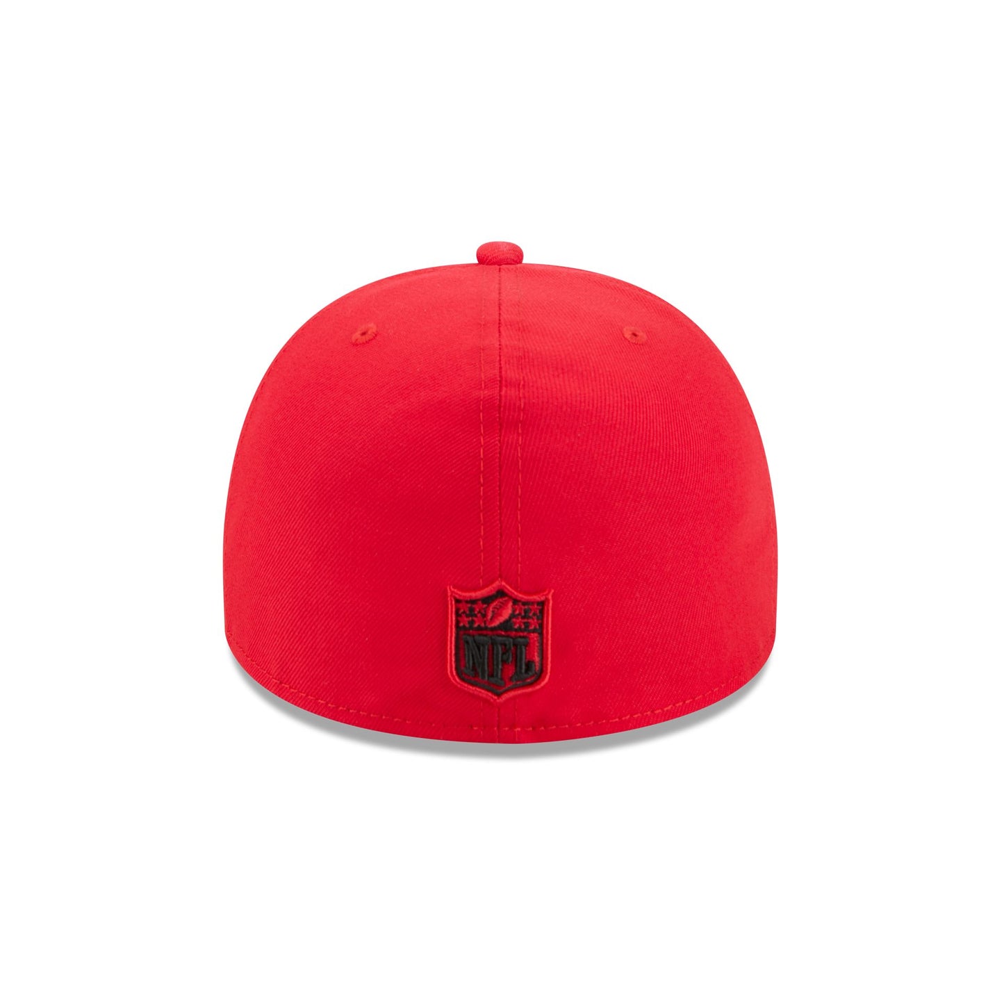 The Kansas City Chiefs Cartoon 59FIFTY A-Frame Fitted Cap features an embroidered Chiefs cartoon themed logo at the front with a matching NFL Shield at the rear, a monochromatic team logo at the right-wear side, and a gray undervisor.