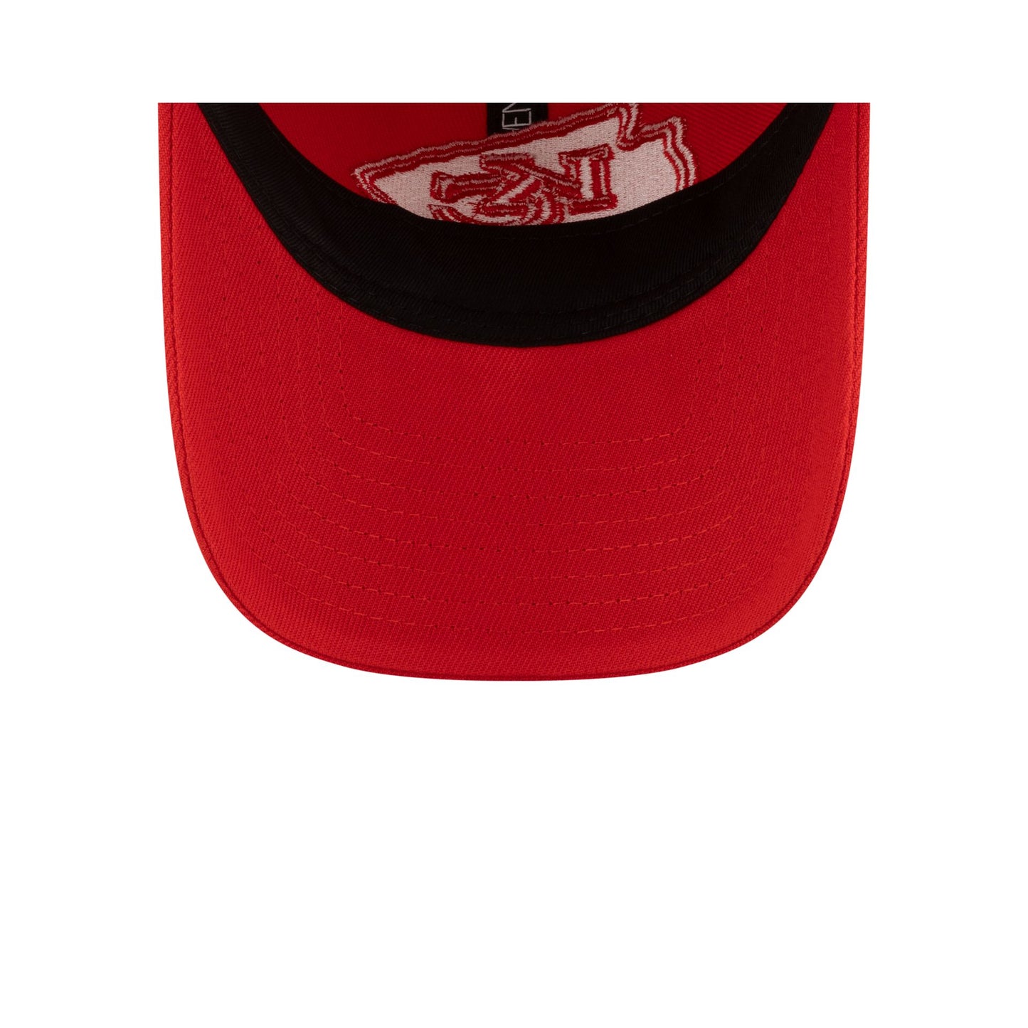 The Kansas City Chiefs Front Door Red 9TWENTY Adjustable Cap features an embroidered Chiefs logo at the front panels with an adjustable D-Ring closure at the rear.