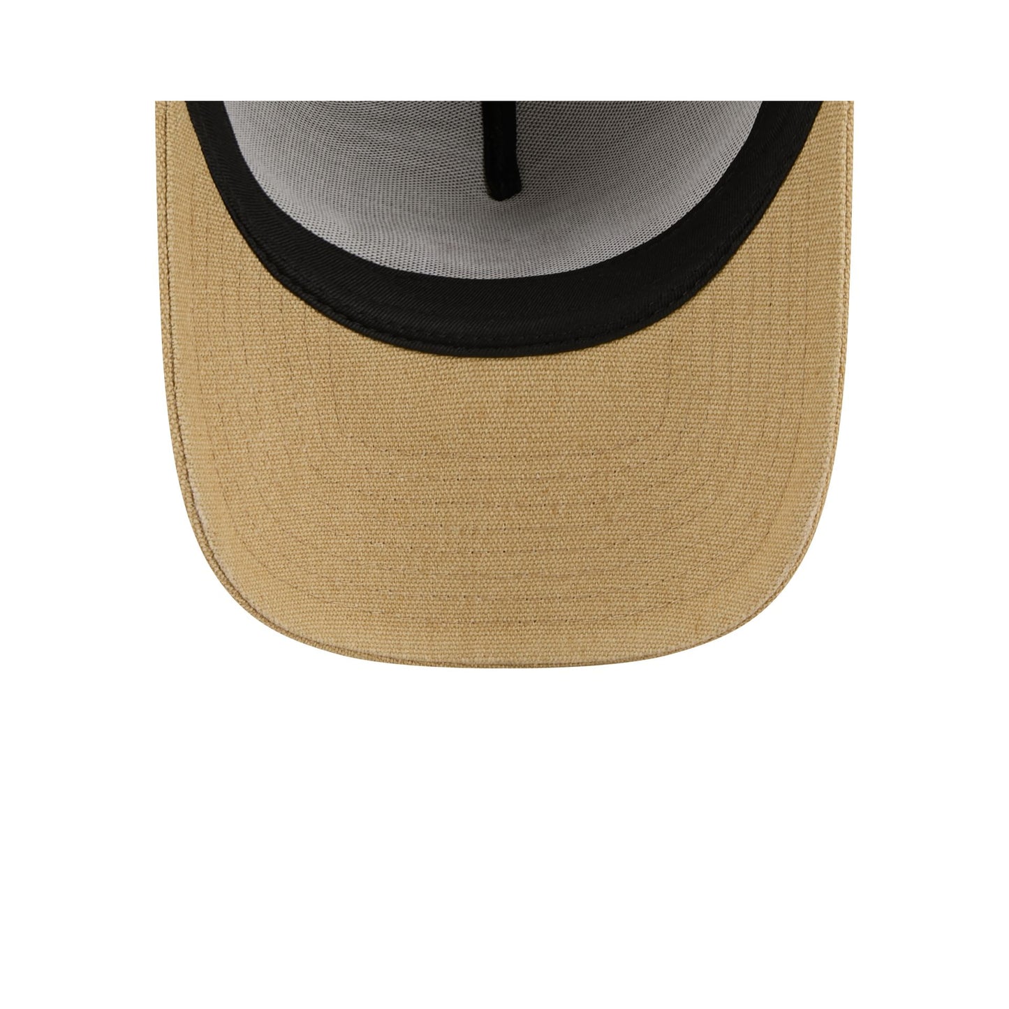 The Kansas City Chiefs Logo Essentials Khaki 9FORTY A-Frame Snapback features an embroidered Chiefs logo at the front panels with a snapback closure at the rear.