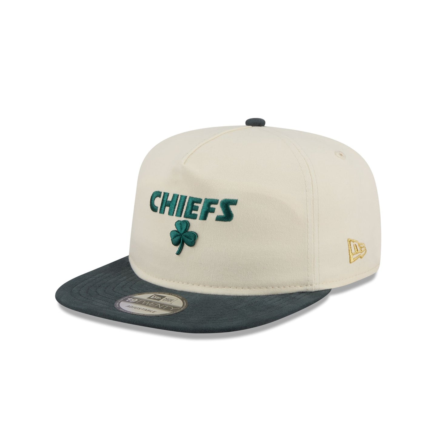 The Kansas City Chiefs Metallic Logo 19TWENTY Adjustable Cap features an embroidered metallic Chiefs logo and clover graphic at the front panels with an adjustable snapback closure at the rear and a gray undervisor.