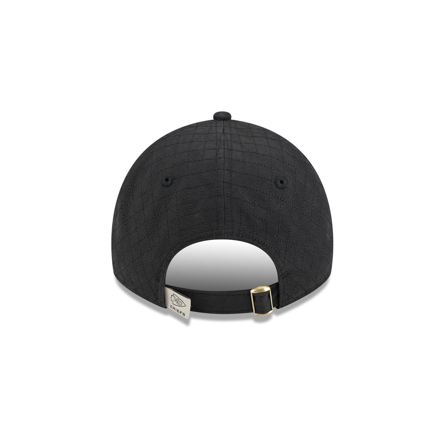 The Kansas City Chiefs Quilted Wordmark 9TWENTY Adjustable Cap features an embroidered Chiefs wordmark above a team logo at the front panels with a woven team logo tag at an adjustable D-Ring closure at the rear and a diamond quilted, brushed cotton all over fabrication.