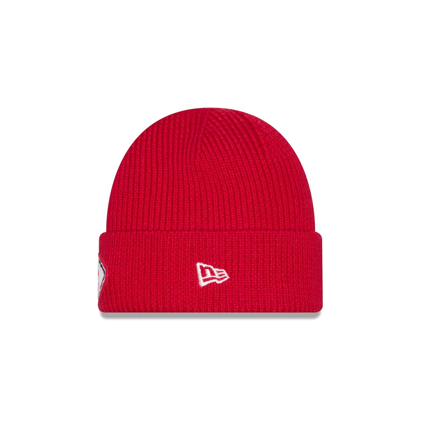 The Kansas City Chiefs Short Skull Cuff Knit Beanie features an embroidered Chiefs logo at the front cuff with the NFL Shield logo at the rear.