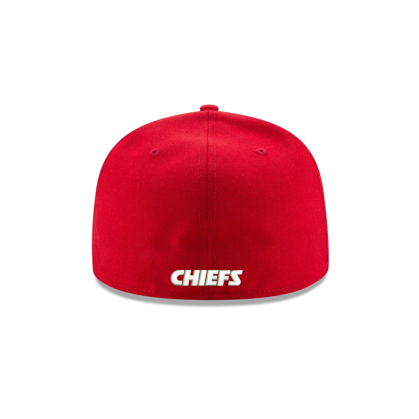 The Kansas City Chiefs Super Bowl LIX Participation Side Patch 59FIFTY Fitted Cap features an embroidered Chiefs logo at the front panels with a matching team wordmark at the rear and the Official Super Bowl LIX at the right-wear side.