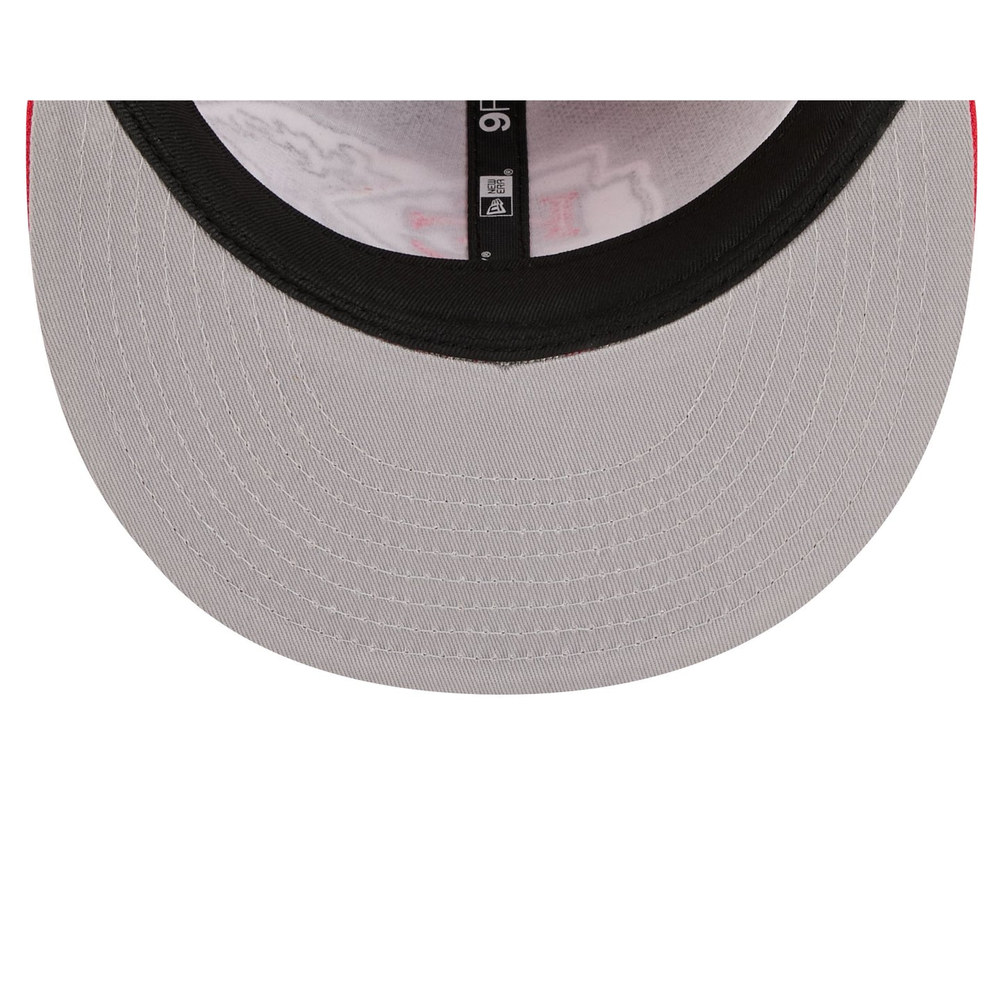 The Kansas City Chiefs Tidal Flow Retro Crown 9FIFTY Adjustable Cap features an embroidered Chiefs logo at the front panels with tidal waves throughout the cap. Additional details include an adjustable snapback closure at the rear and a gray undervisor.