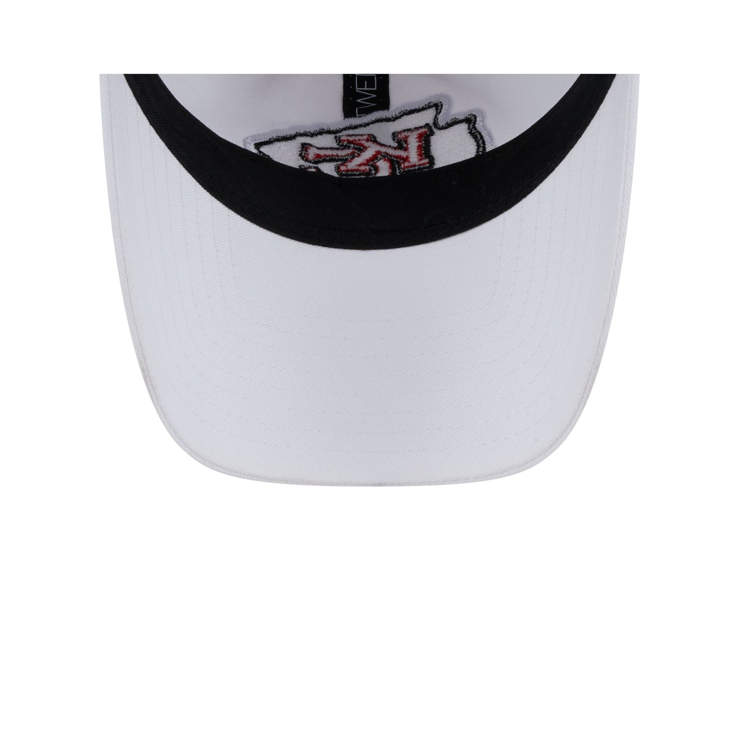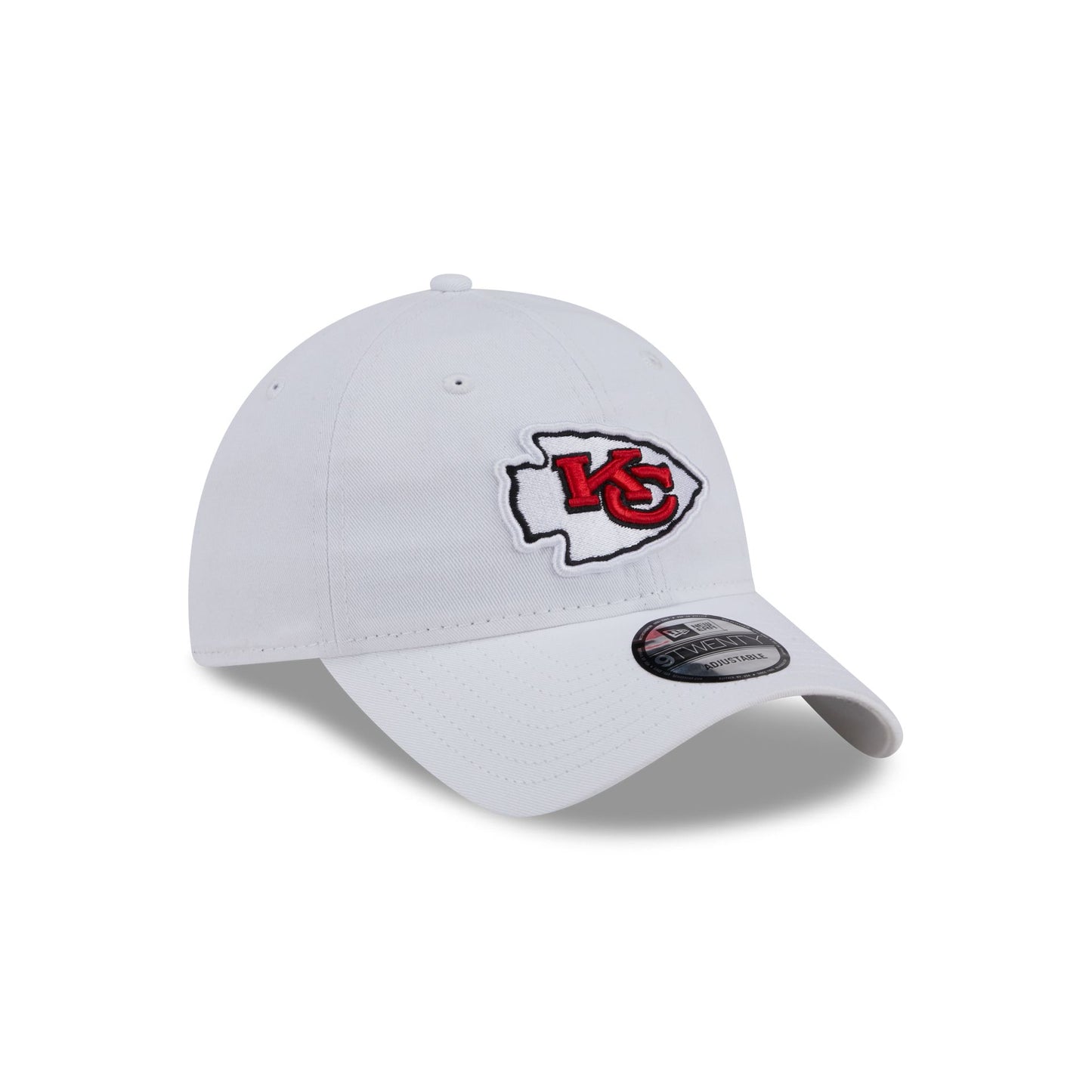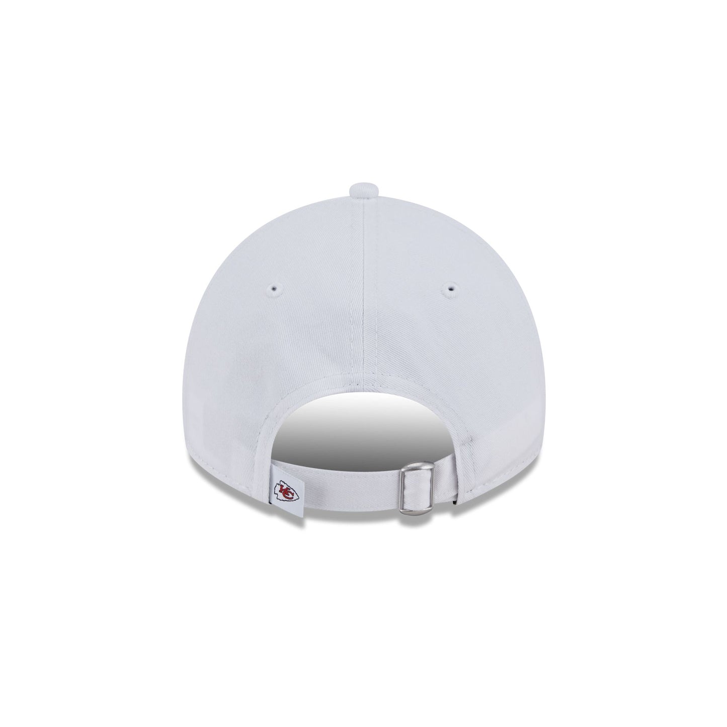 The Kansas City Chiefs White 9TWENTY Adjustable Cap features an embroidered Chiefs logo at the front panel with a matching woven team logo tag at an adjustable D-Ring closure at the rear.