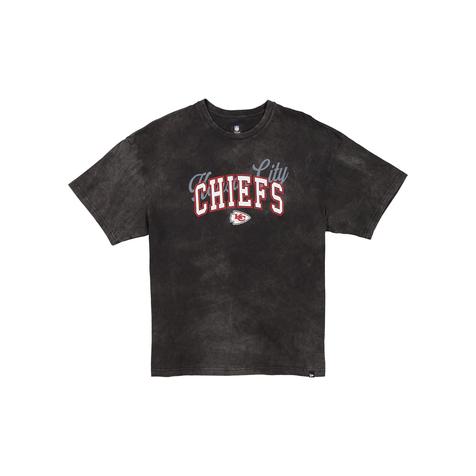 The Kansas City Chiefs Women's Oversized Washed Black T-Shirt features a screen-printed Chiefs graphic at the front with a washed fabrication.