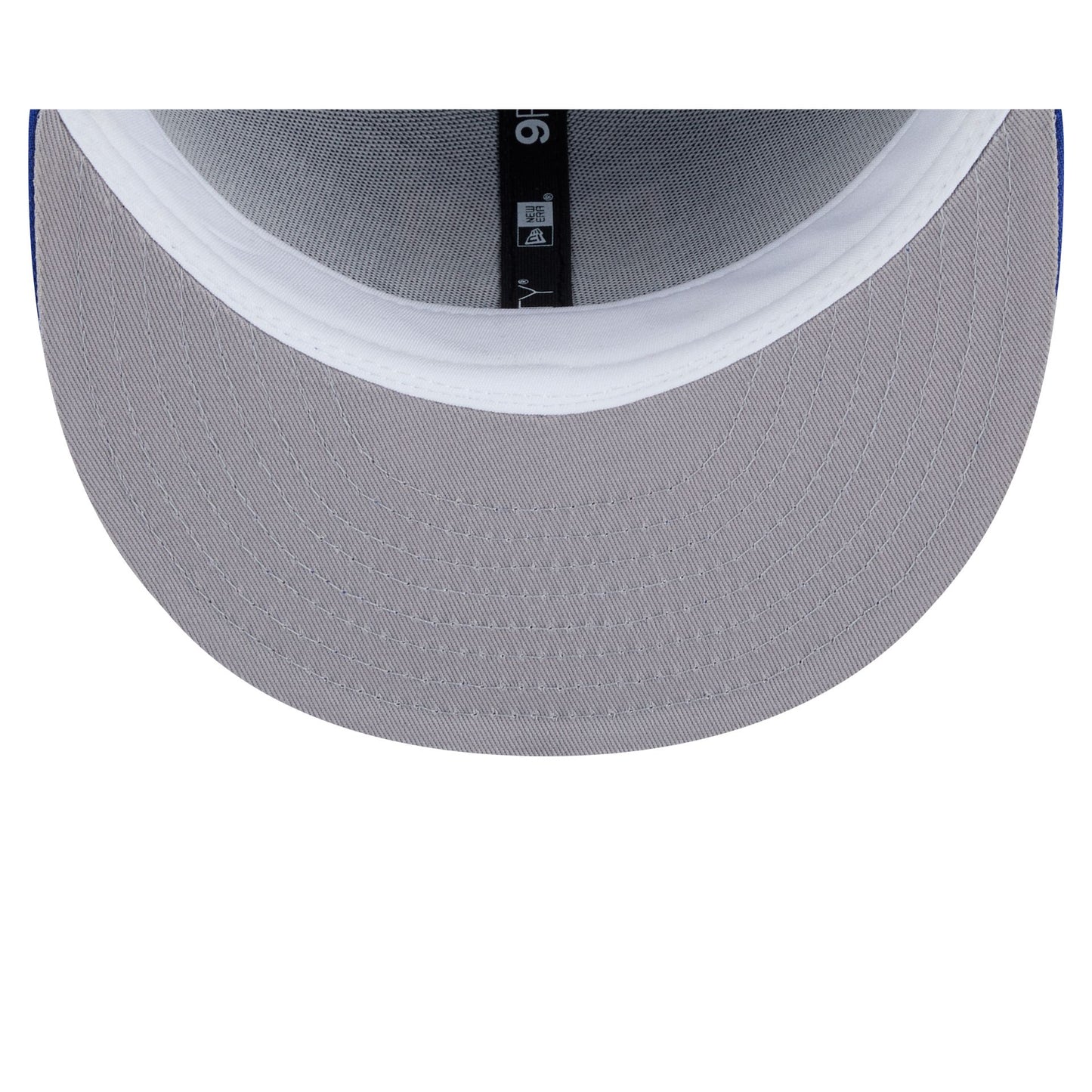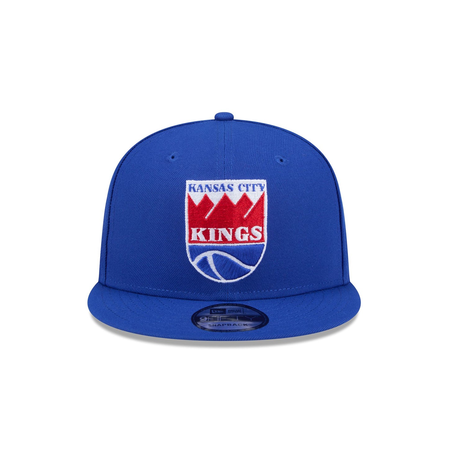 The Kansas City Kings 1972-1974 Hardwood Classics 9FIFTY Snapback features an embroidered vintage Kings logo at the front panels with the NBA Logoman at the right-wear side. Additional details include an adjustable snapback closure at the rear and a gray undervisor.