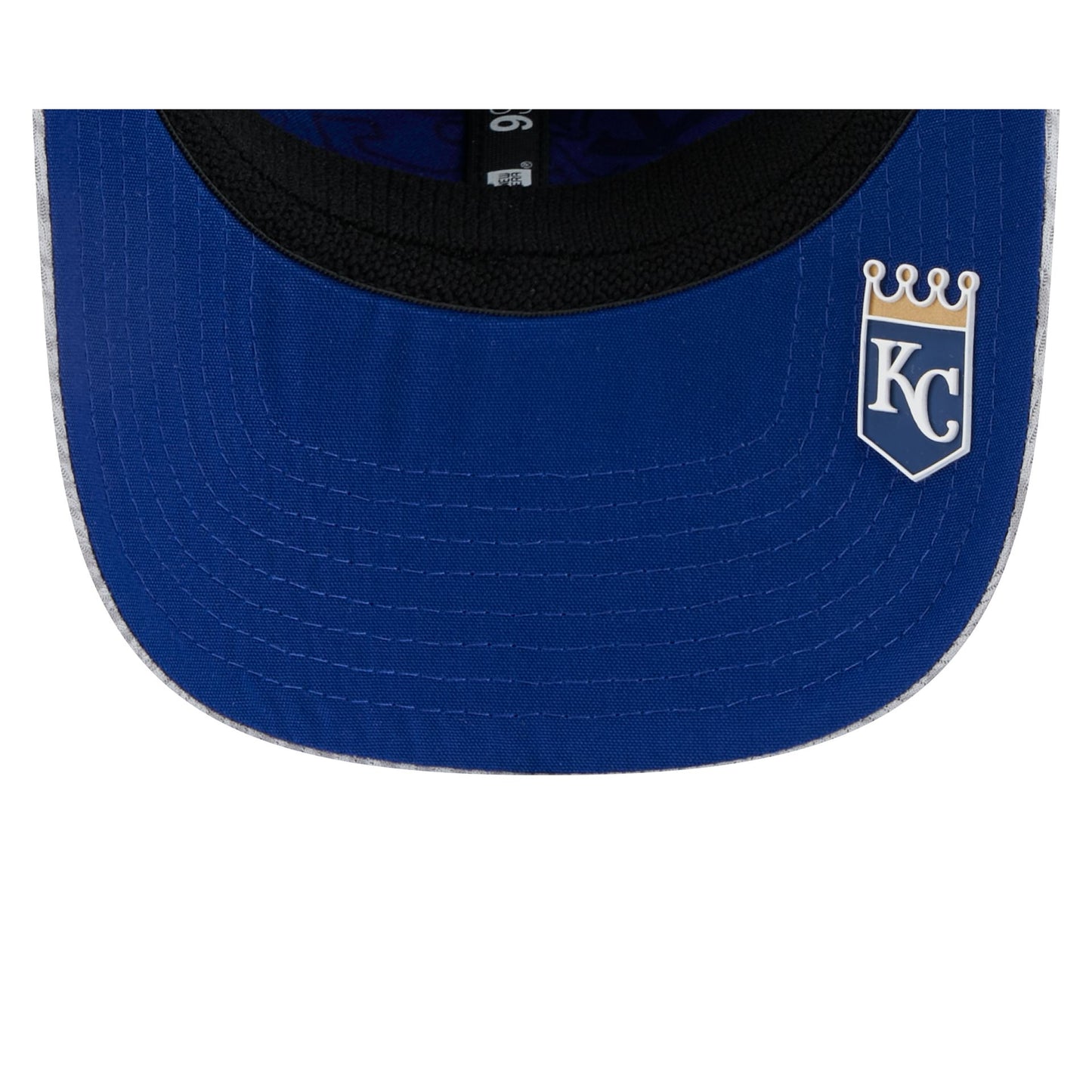 The Kansas City Royals 2025 Clubhouse Gray 9SEVENTY Stretch-Snap Cap features an embroidered Royals logo at the front panels with a matching MLB Batterman logo above a snapback closure at the rear and a dashmark mesh fabrication throughout. Additional details include a silicone team tag on the right-wear side and team logo on the undervisor.
