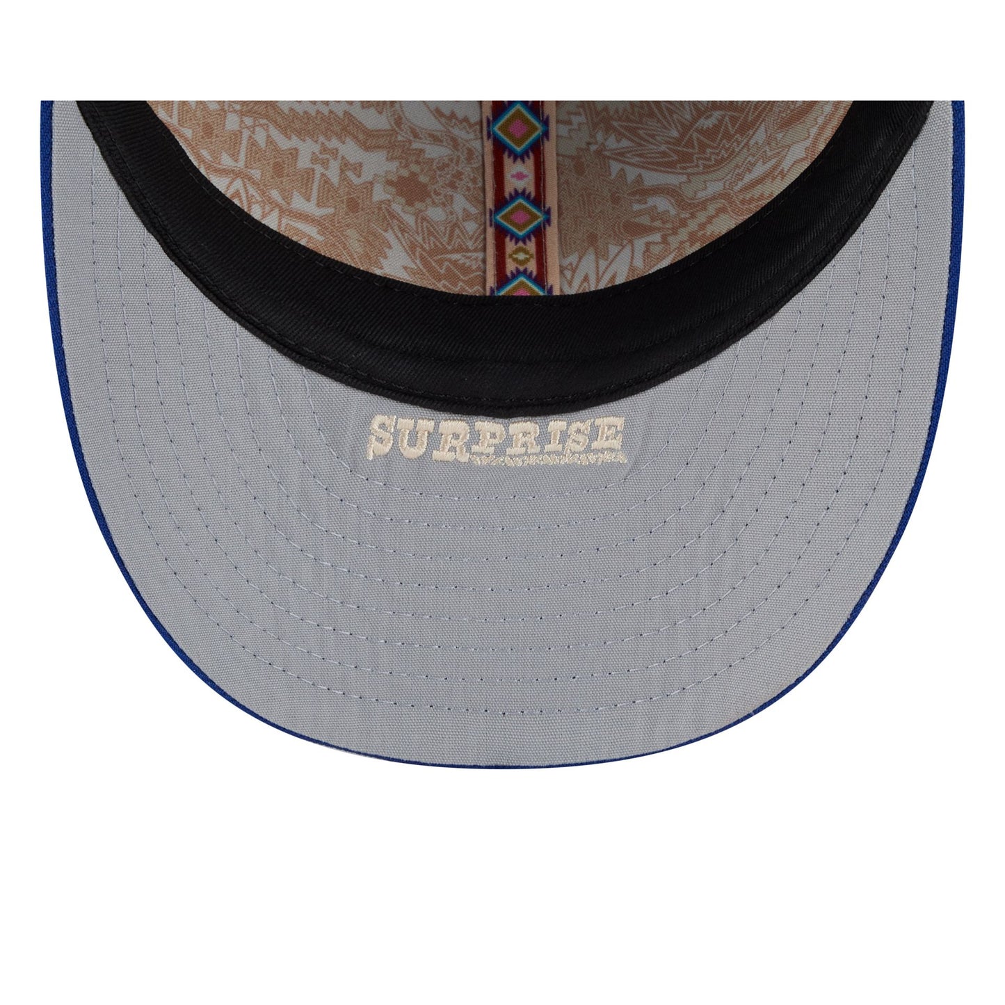 The Kansas City Royals 2026 Spring Training 59FIFTY Fitted Cap features an embroidered floral Royals logo at the front panels with a 2026 Spring Training patch at the right-wear side and the MLB Batterman logo at the rear. Additional details include an embroidered spring training location at a gray undervisor and a floral lining. This cap comes with a pre-curved visor.