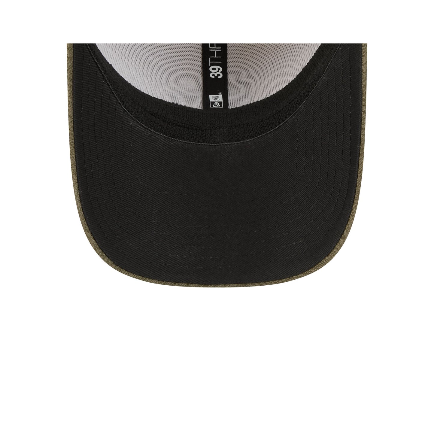 The Kansas City Royals Armed Forces Day 2025 39THIRTY Stretch Fit Cap features an embroidered Royals logo at the front panels with a team wordmark at the rear. Additional details include the American Flag embroidered at the right-wear side and a black undervisor.