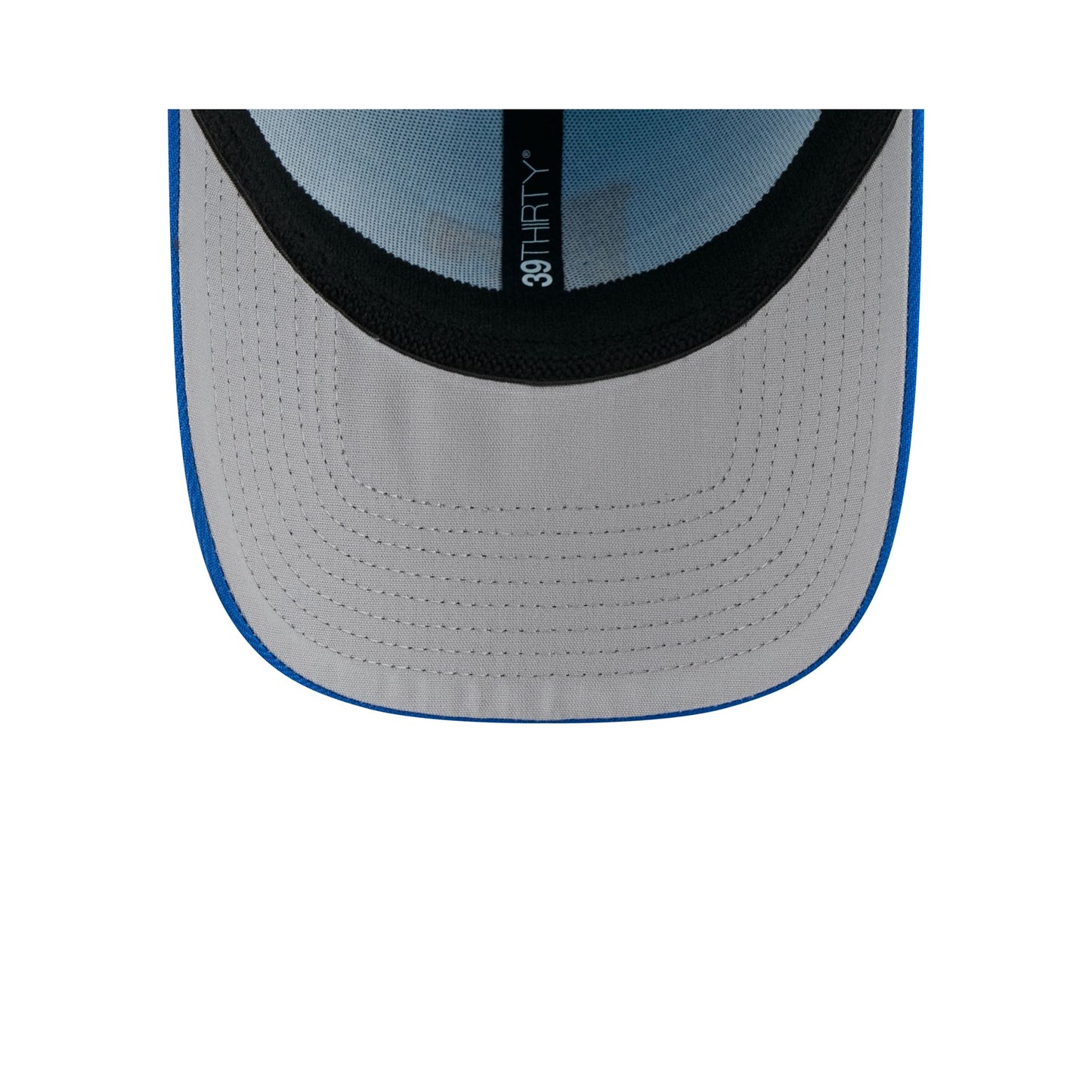 The Kansas City Royals Independence Day 2025 39THIRTY Stretch Fit Cap features an embroidered American flag themed Royals logo at the front panels with a matching team wordmark at the rear, a blue visor, and a gray undervisor.