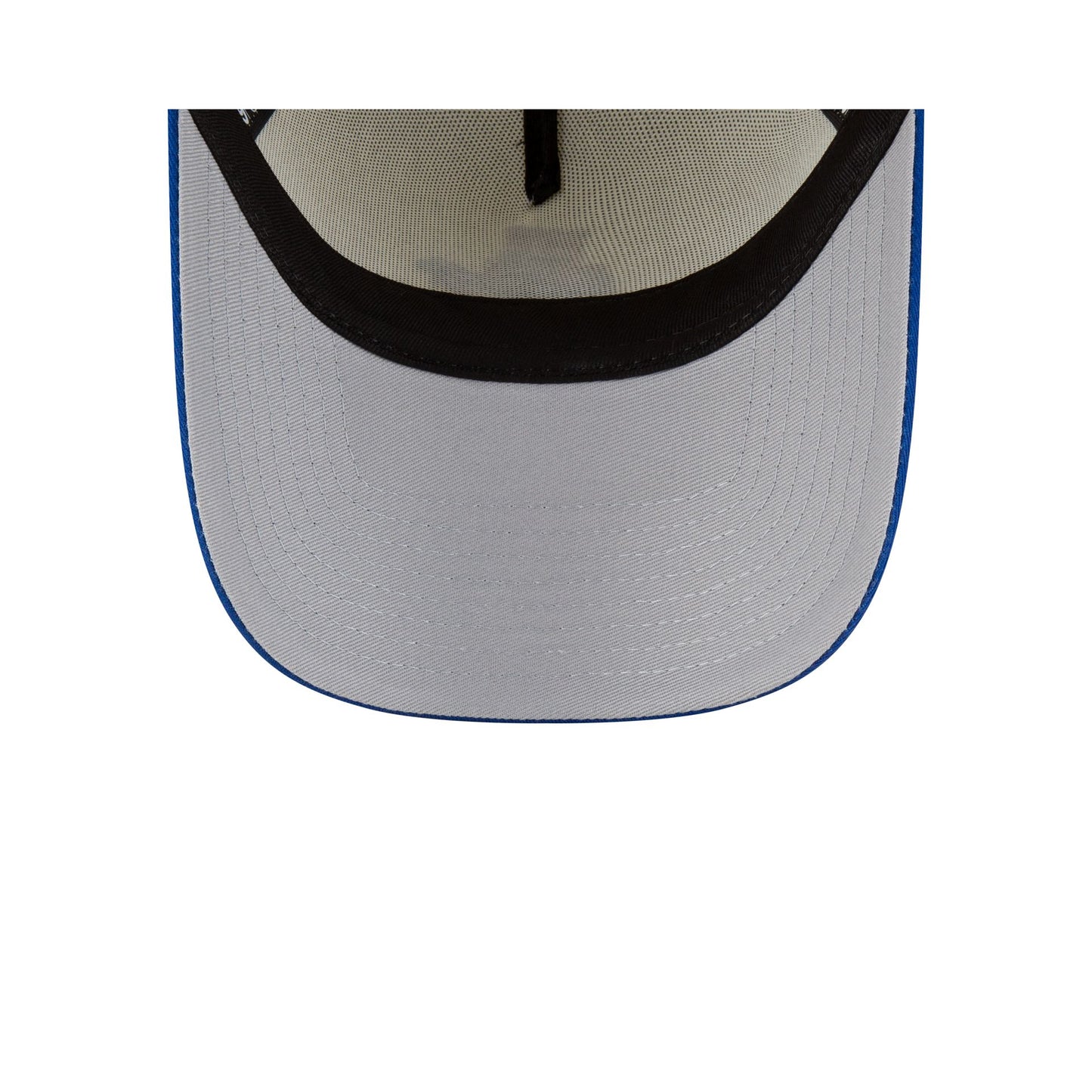 The Kansas City Royals Mini Mascot 9FORTY A-Frame Snapback features an embroidered Royals mascot at the front panels with a 50th Anniversary at the right-wear side and a snapback closure at the rear.