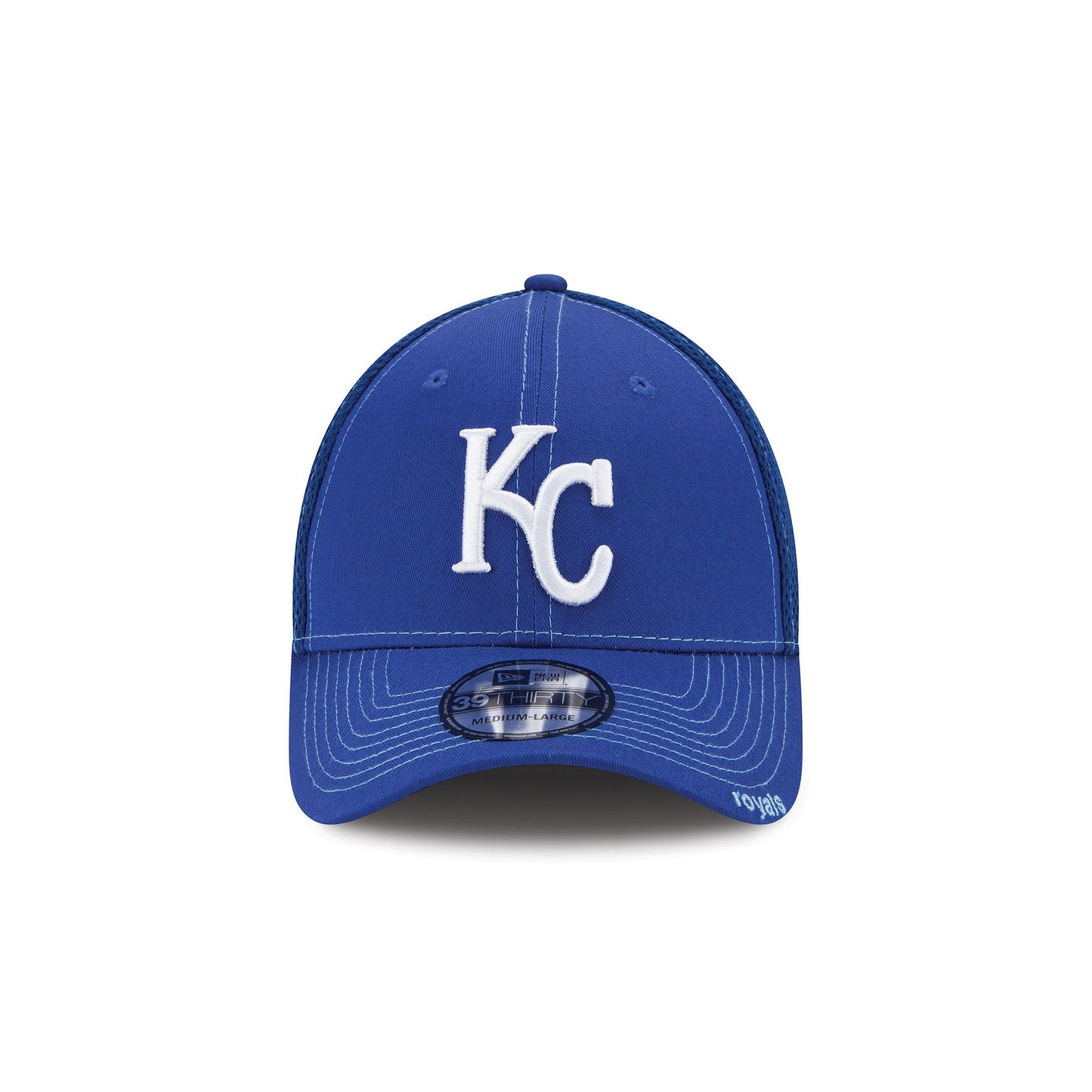 The Kansas City Royals NEO 39THIRTY Stretch Fit Cap features an embroidered Royals logo at the front panels with an alternate logo at the rear and the team name at the visor.