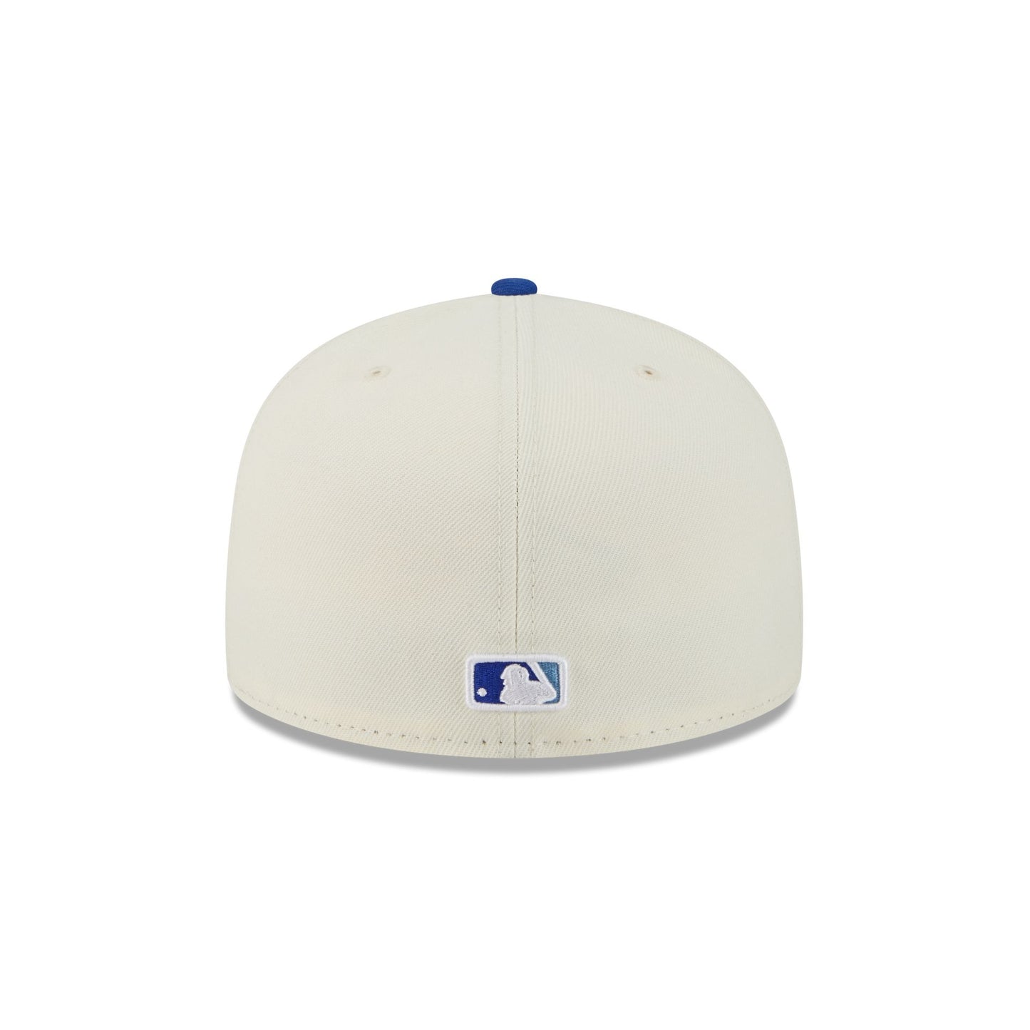 The Kansas City Royals Summer Derby 59FIFTY A-Frame Fitted Cap features an embroidered Royals wordmark over team color stripes at the front panels with a matching MLB Batterman logo at the rear. Additional details include a 2012 All-Star game patch at the right-wear side, a blue visor, and a green undervisor.