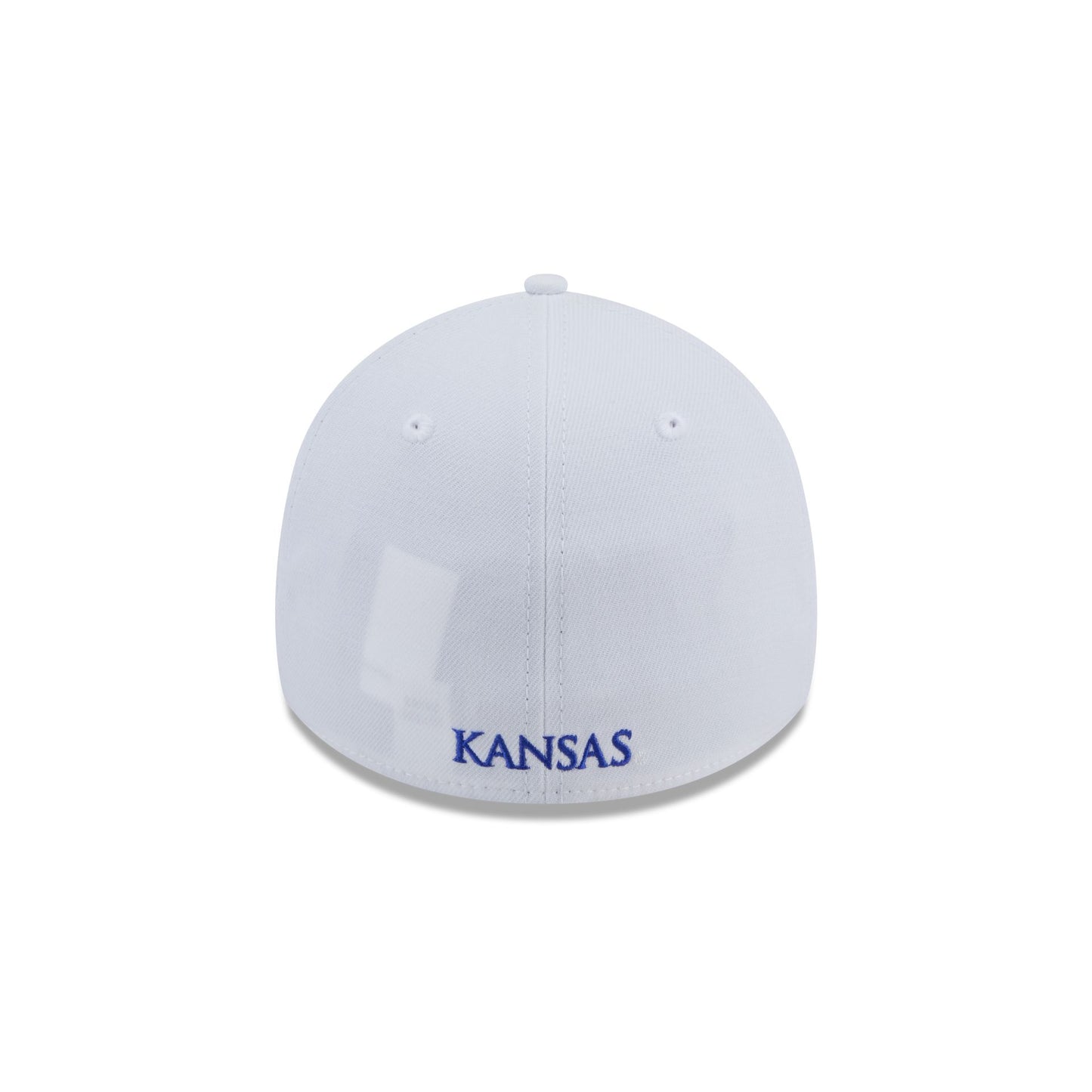 The Kansas Jayhawks Chrome 39THIRTY Stretch Fit Cap features an embroidered Jayhawks logo at the front panels with a matching team wordmark at the rear and a white undervisor.