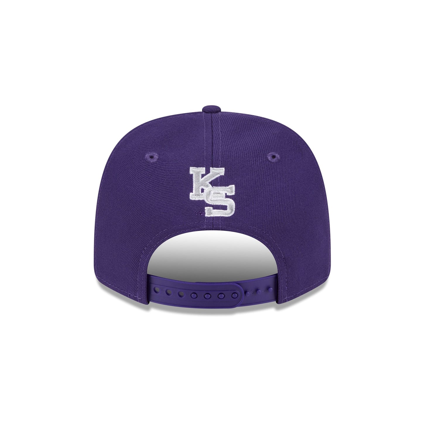 The Kansas State Wildcats Team 9SEVENTY Stretch-Snap Cap features an embroidered Wildcats logo at the front panels with an alternate team logo above a snapback closure at the rear and a gray undervisor.
