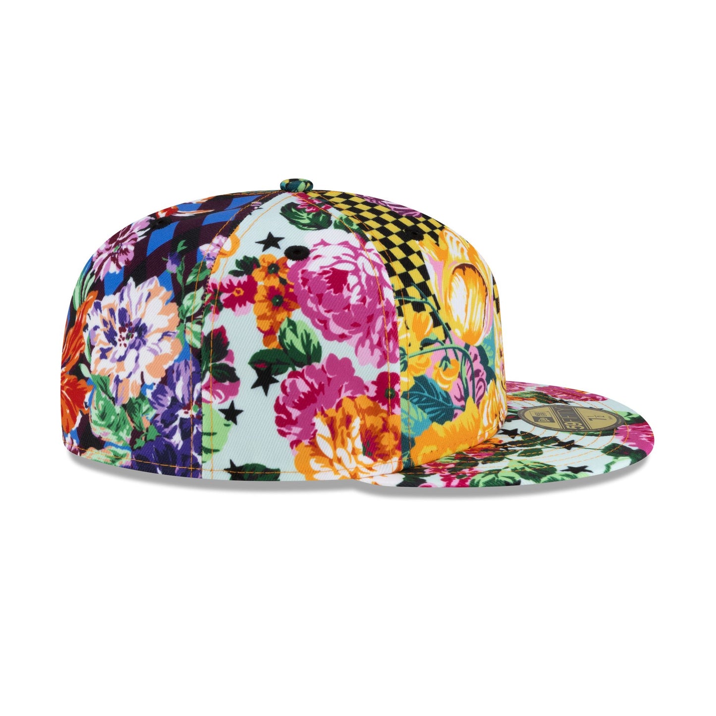 The Kenzo Checkered Floral 59FIFTY Fitted Cap features a floral checkered print throughout the cap's panels and undervisor with a Kenzo logo at the rear.