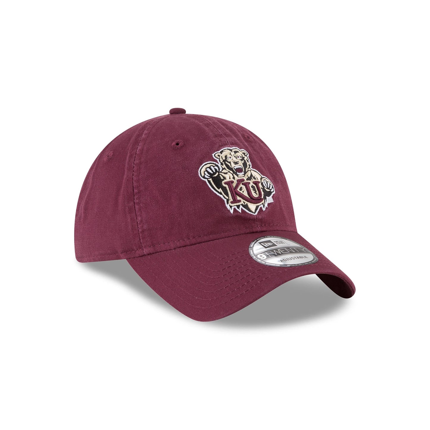 The Kutztown Golden Bears Core Classic 9TWENTY Adjustable Hat features an embroidered Golden Bears logo at the front panels with a woven tab displaying the team logo on a D-Ring closure at the rear.