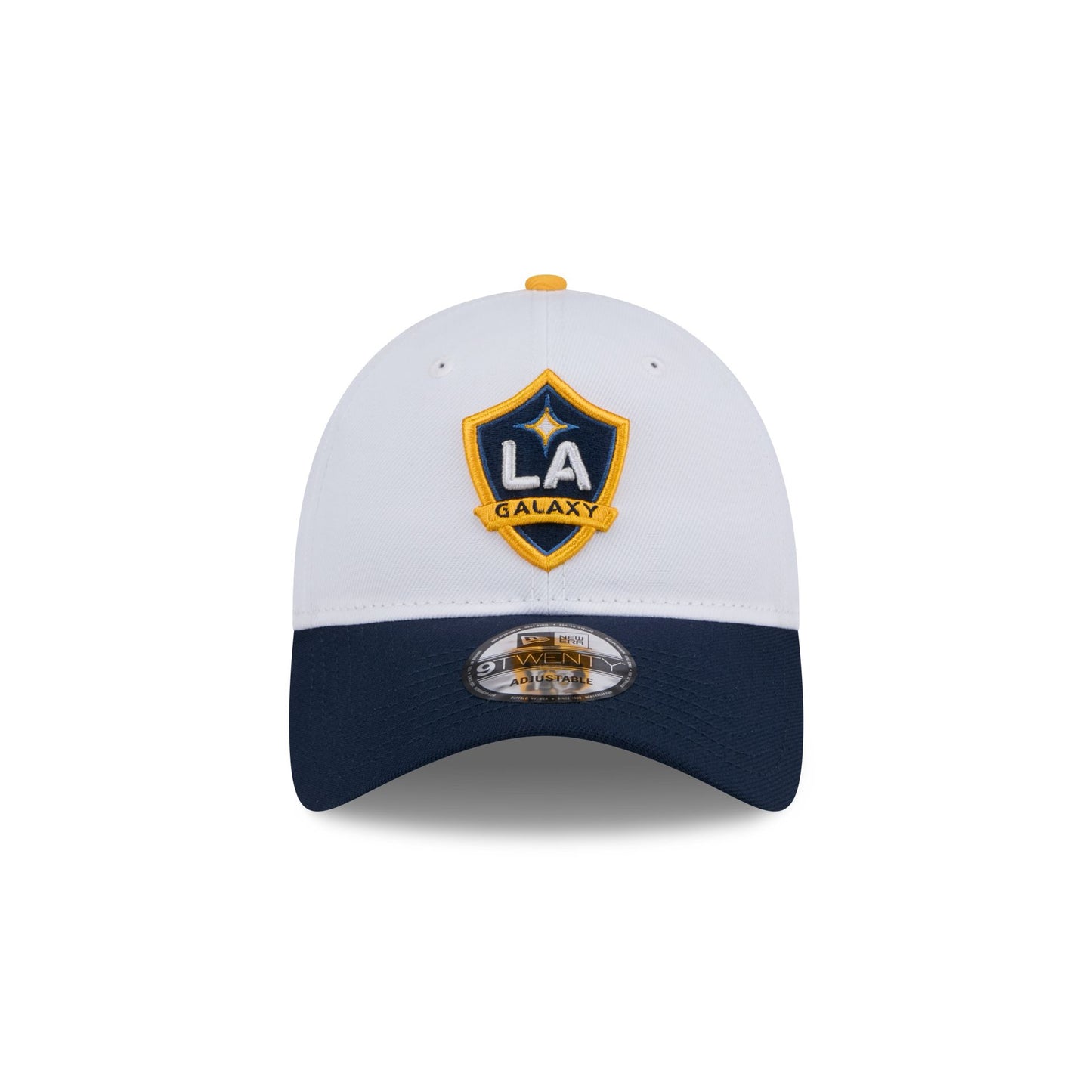 The LA Galaxy 2024 Jersey Hook 9TWENTY Adjustable Cap features an embroidered Galaxy logo at the front panels with a team script at the right-wear side and an adjustable closure at the rear.
