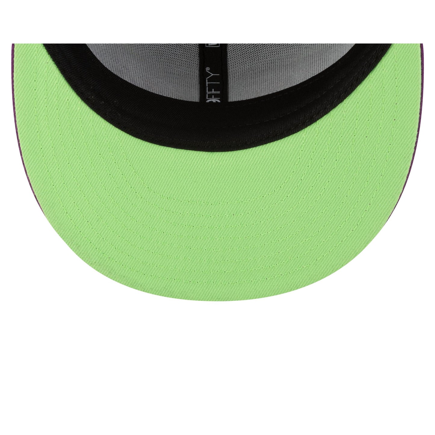 The Lake Elsinore Storm Halloween Purple 59FIFTY Fitted Cap features an embroidered Storm themed logo at the front panels with a matching MiLB Batterman logo at the rear, a purple visor, and a green undervisor.