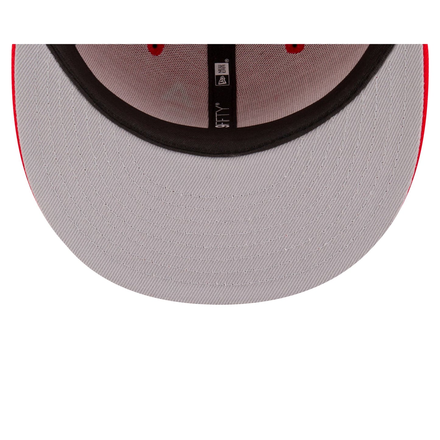 The Las Vegas Aces Rebel Series 9FIFTY Snapback features an embroidered Aces wordmark at the front panels with a team logo at the right-wear side, an adjustable snapback closure at the rear, and a gray undervisor.