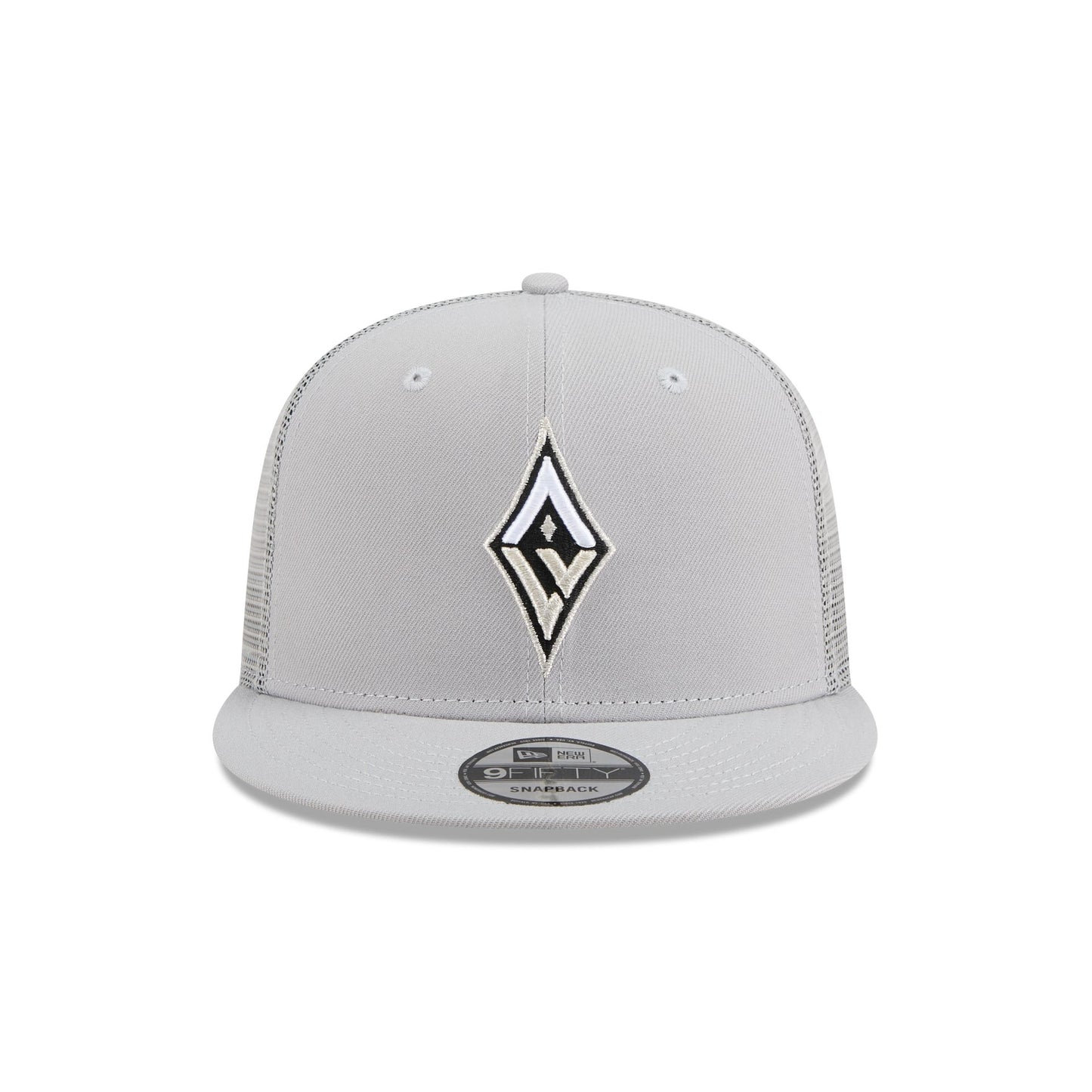 The Las Vegas Aces 9FIFTY Trucker features an embroidered Aces logo at the front panels with a matching woven team tag at a snapback closure at the rear and a gray undervisor.