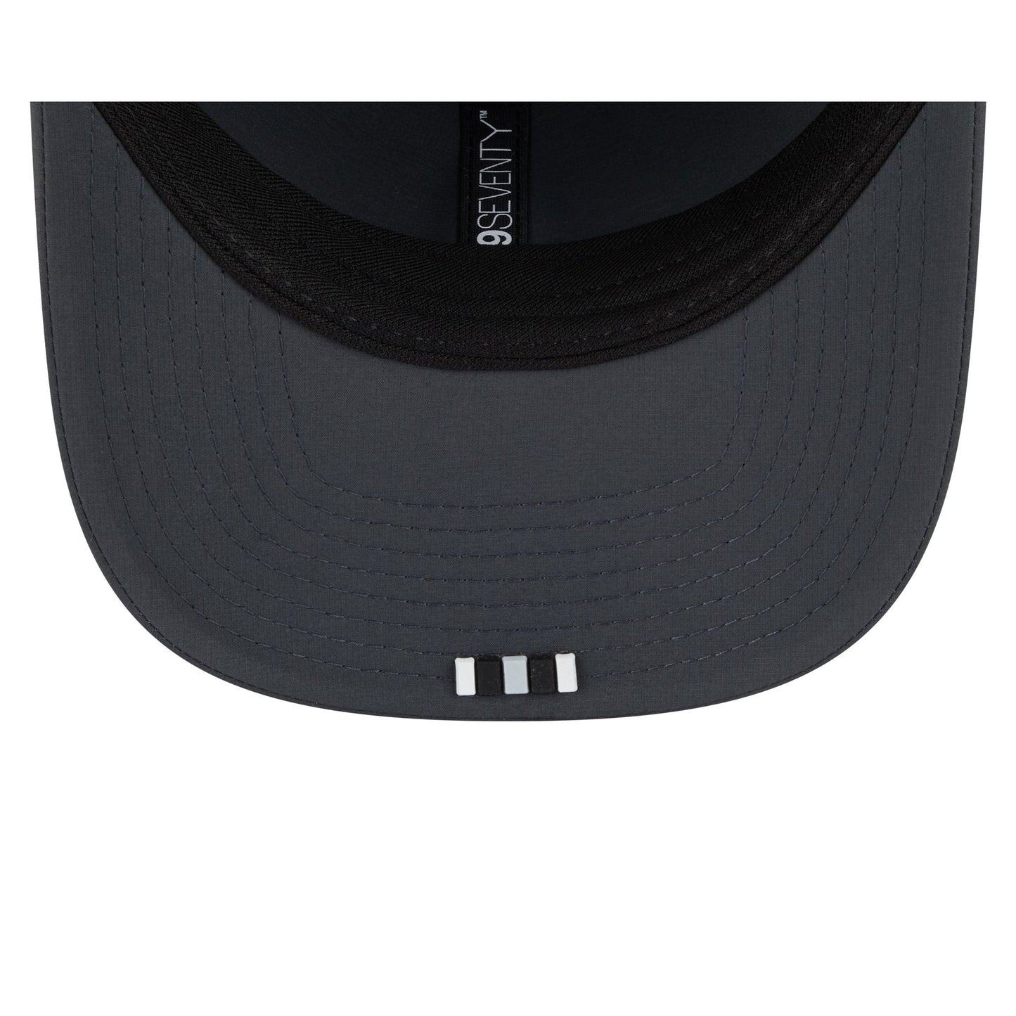 The Las Vegas Raiders 2025 Sideline Cold Weather Steel Clouds 9SEVENTY Stretch-Snap features a sewn-down silicone Raiders logo patch at the front panels with a water-repellent quill tech fabrication throughout and an insulated crown with a quick-dry cushioned sweatband. Additional details include the Official NFL Shield logo to the right of a soft silicone snapback closure at the rear. The undervisor is accented with a silicone transfer in the team’s colors.