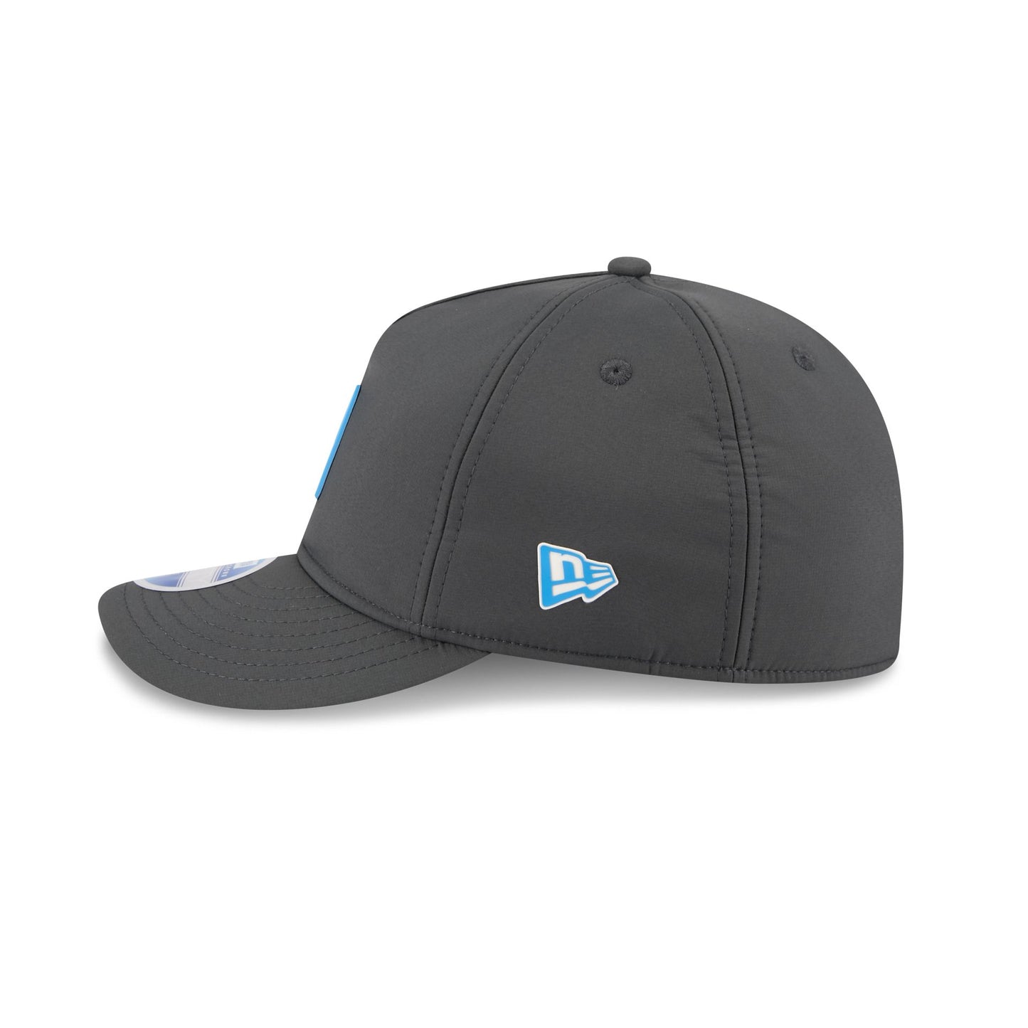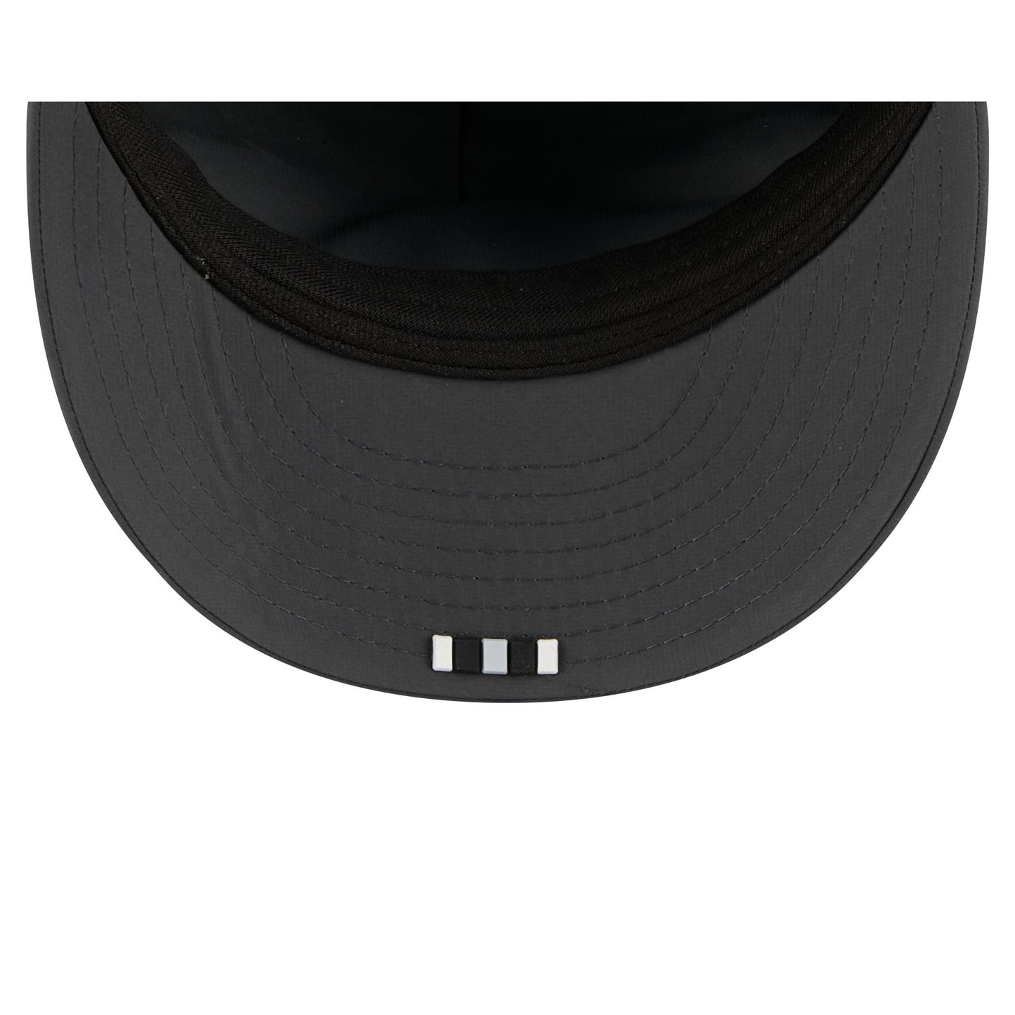 The Las Vegas Raiders 2025 Sideline Cold Weather Steel Clouds Retro Crown 59FIFTY A-Frame Fitted Cap features a sewn-down silicone Raiders logo patch at the front panels with the Official NFL Shield logo at the rear. The cap has a water-repellent quill tech fabrication throughout, with an insulated crown and quick-dry cushioned sweatband. The undervisor is accented with a silicone transfer in the team’s colors.