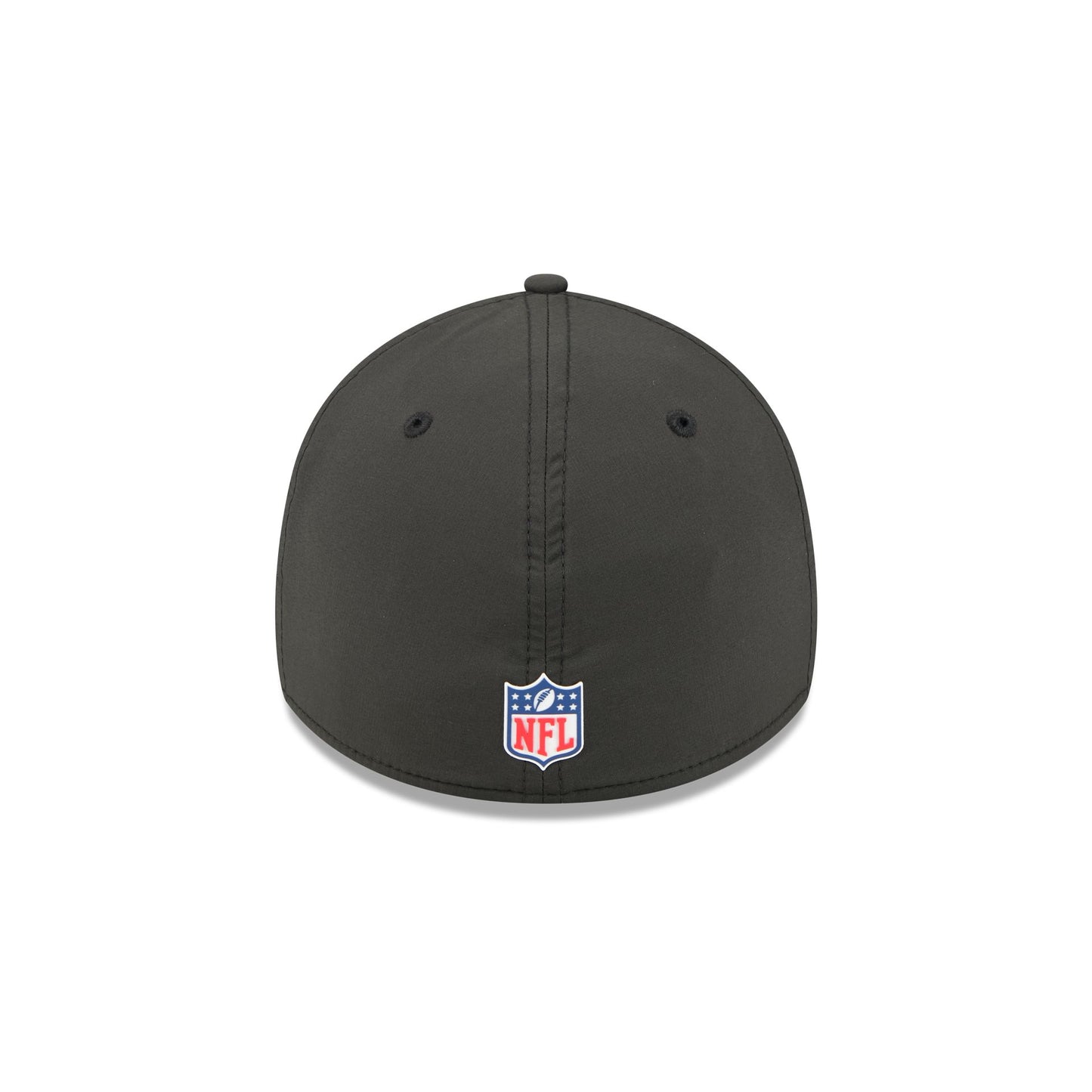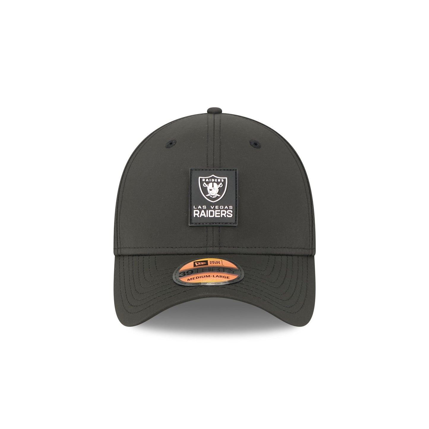 The Las Vegas Raiders 2025 Sideline Hot Weather 39THIRTY Stretch Fit Cap features a sewn-down silicone Raiders logo patch at the front panels with the Official NFL Shield logo at the rear. The cap has a water-repellent quill tech fabrication throughout, with an insulated crown and quick-dry cushioned sweatband. The undervisor is accented with a silicone transfer in the team’s colors.