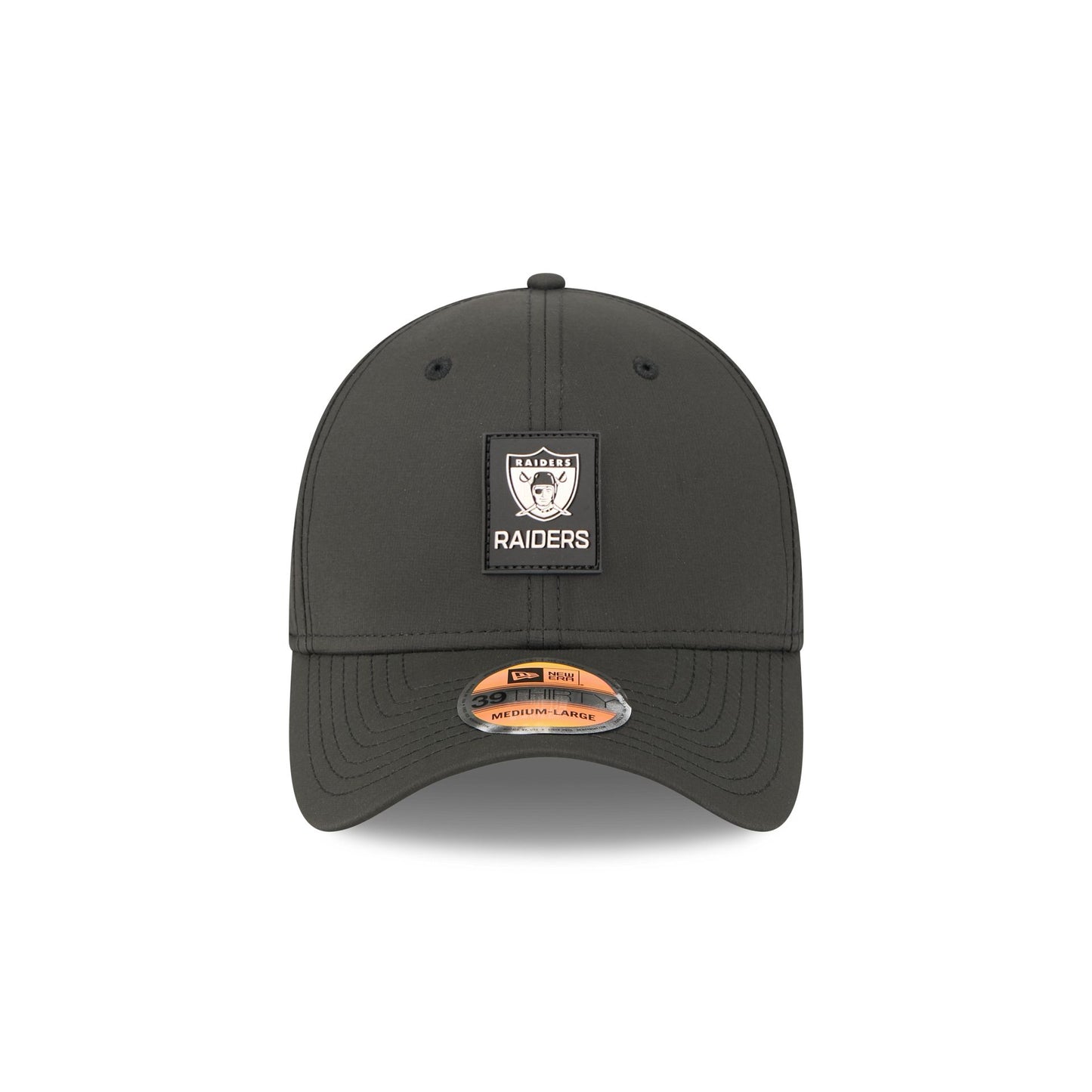 The Las Vegas Raiders 2025 Sideline Hot Weather Historic 39THIRTY Stretch Fit features a sewn-down silicone Raiders historic logo patch at the front panels with the Official NFL Shield logo at the rear. The cap has a water-repellent quill tech fabrication throughout, with an insulated crown and quick-dry cushioned sweatband. The undervisor is accented with a silicone transfer in the team’s colors.