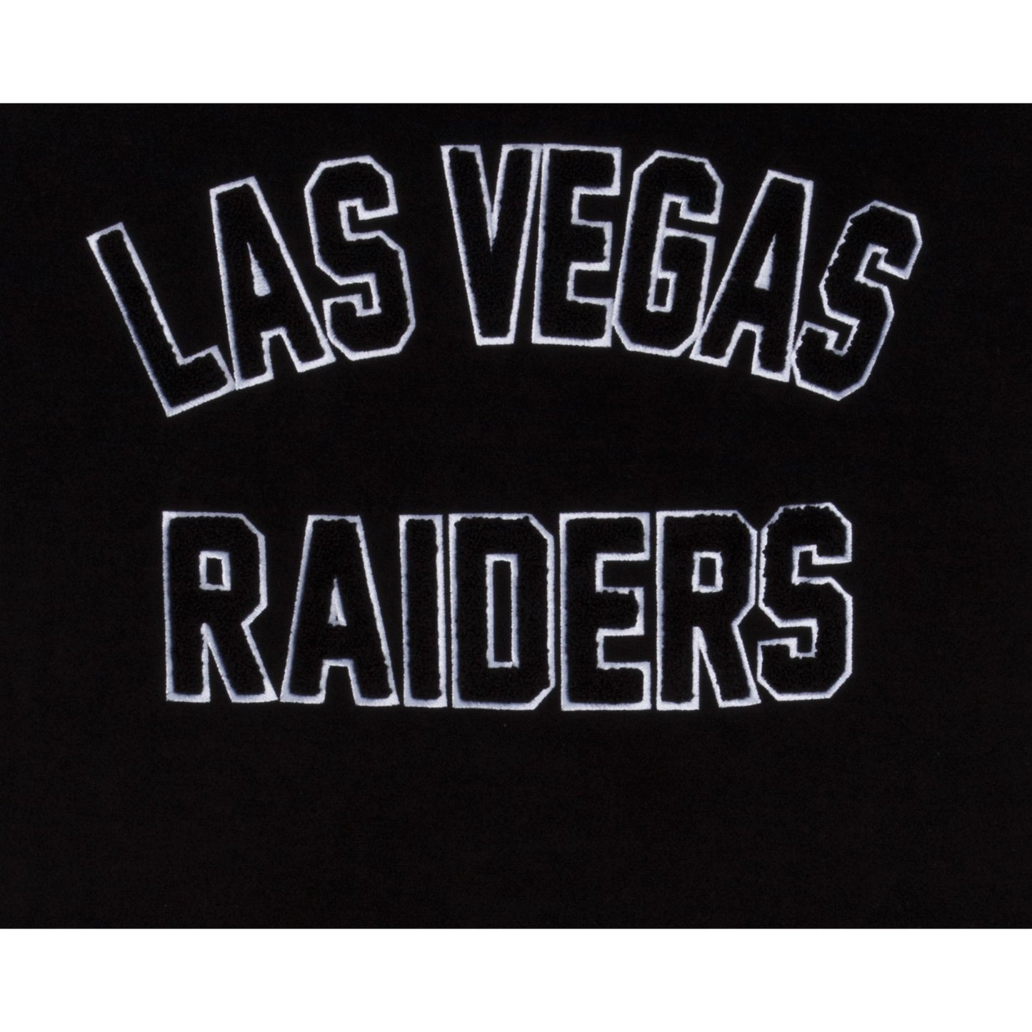 The Las Vegas Raiders 3rd Down Jacket features an embroidered Raiders logo and conference patch with a team wordmark at the front and a chenille team name at the rear. Additional details include pebbled sleeves and a snap button closure.