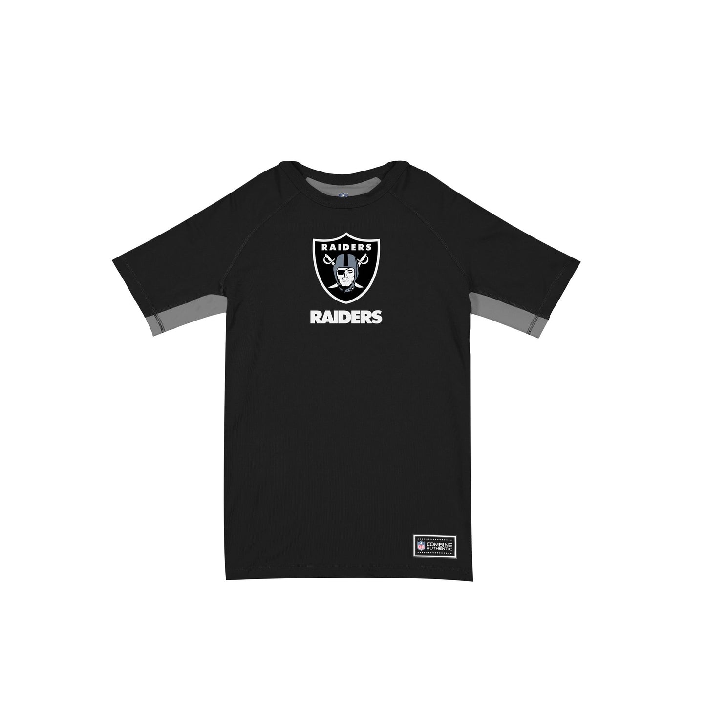 The Las Vegas Raiders Combine T-Shirt features a screen-printed Raiders logo at the front.