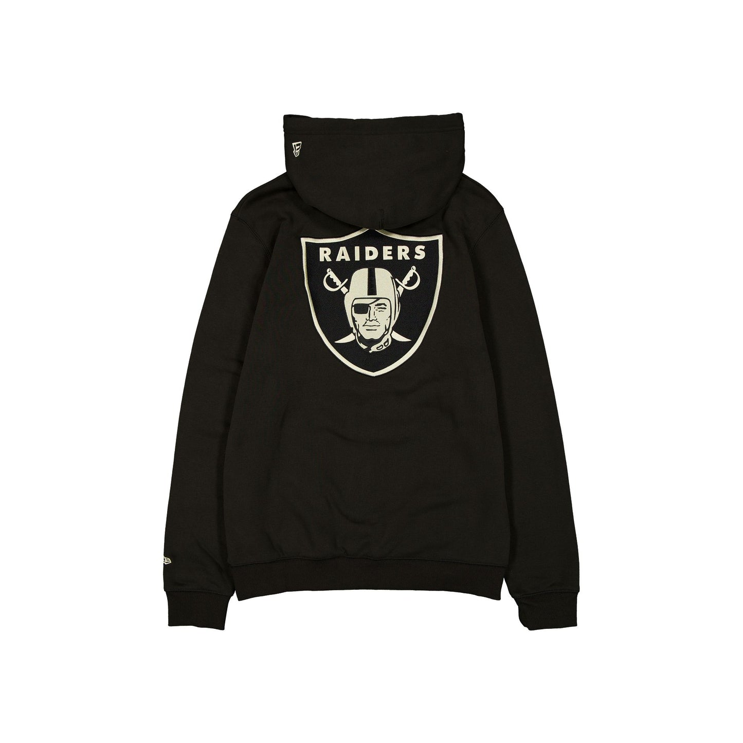 The Las Vegas Raiders Evergreen Check Hoodie features an embroidered applique Raiders checkered wordmark at the front with a matching interior hood and a logo at the rear. Additional details include kangaroo pockets and adjustable drawstrings at the hood.