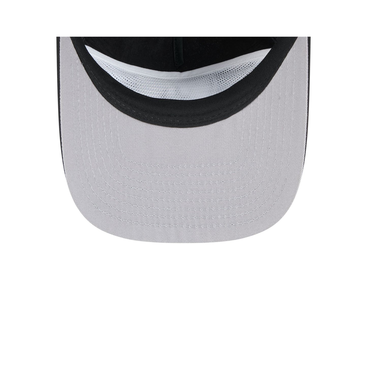 The Las Vegas Raiders Everyday Nylon Black Golfer features an embroidered Raiders logo at the front panels with an adjustable strapback closure at the rear and a gray undervisor.