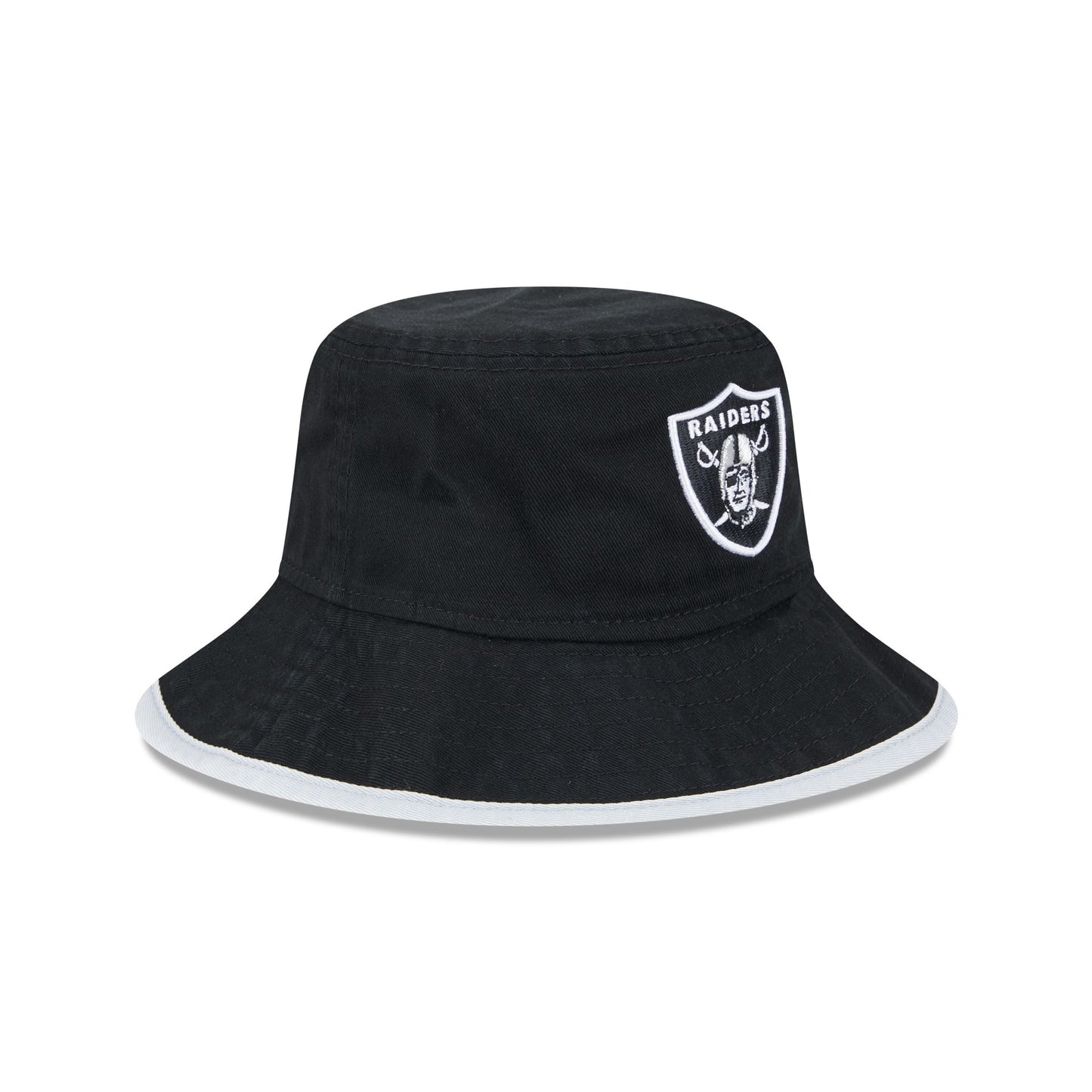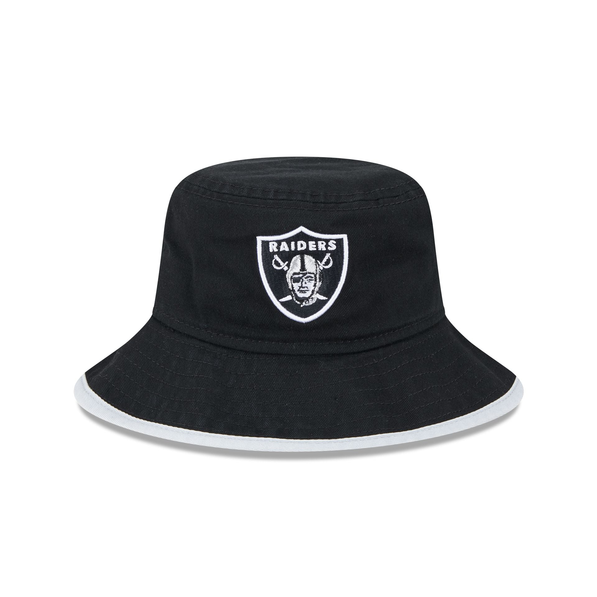 The Las Vegas Raiders Kids Bucket Hat features an embroidered Raiders logo at the front with a matching brim.