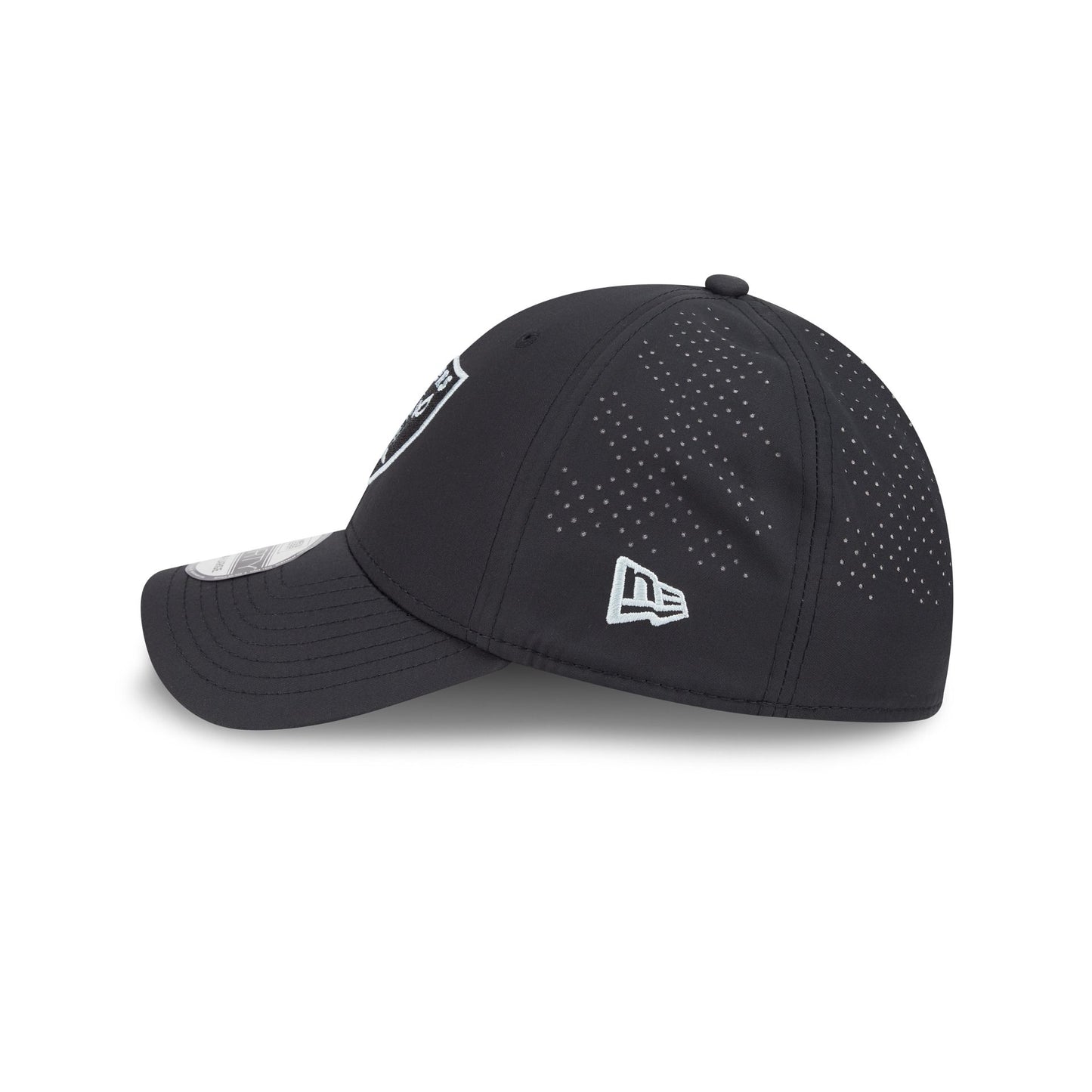 The Las Vegas Raiders Night 39THIRTY Stretch-Fit features an embroidered Raiders logo at the front panels with a NFL Shield logo at a performance mesh rear.