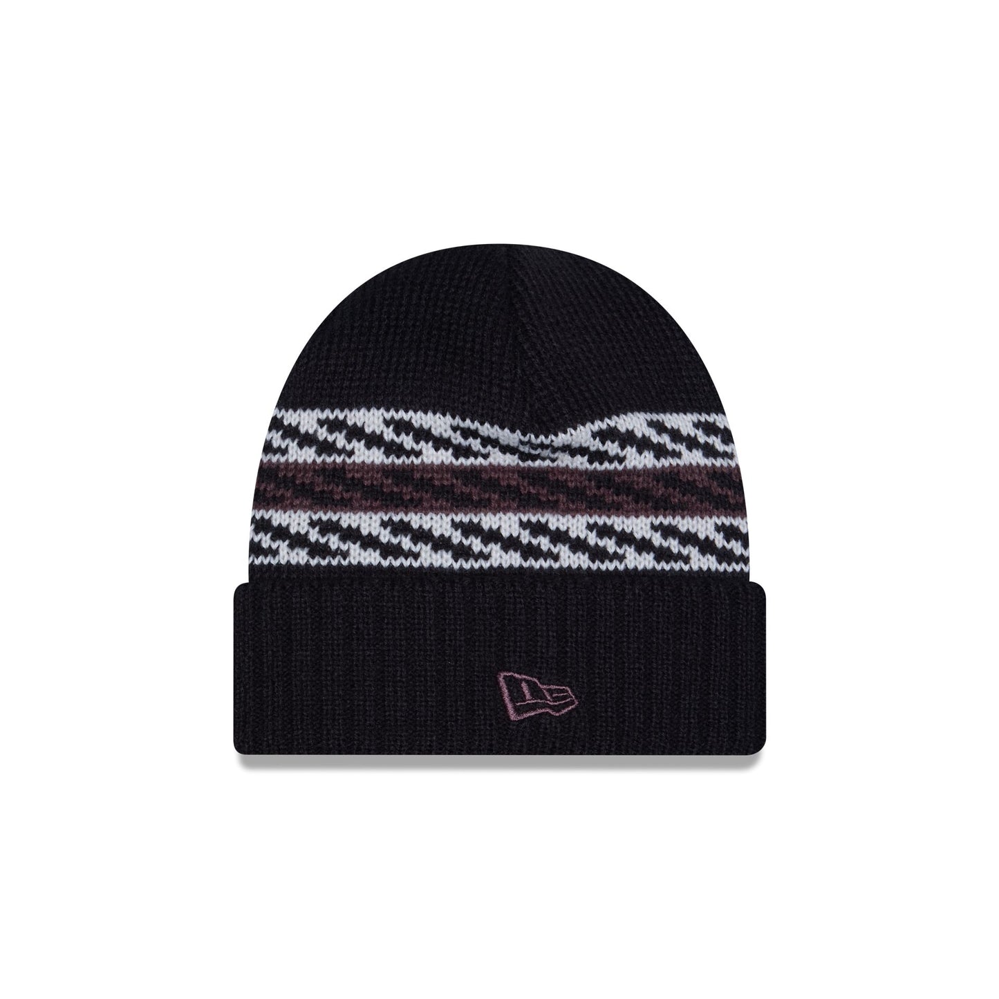 The Las Vegas Raiders Quilted Cuff Knit features a double layered felt applique Raiders patch at the front with stripe details at the crown and a New Era Flag at the left-wear side.