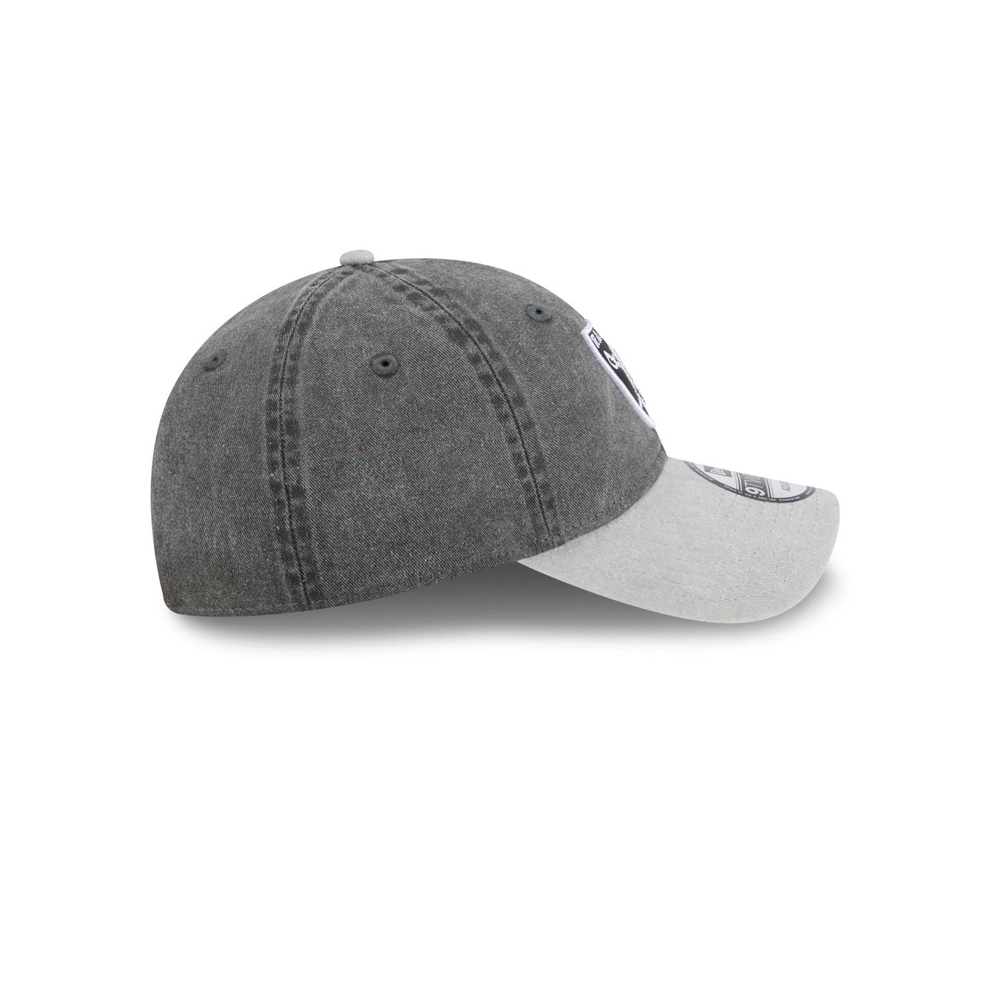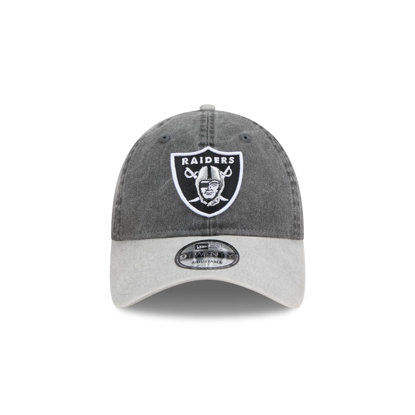 The Las Vegas Raiders Select 9TWENTY Adjustable Cap features an embroidered Raiders logo at the front panels with a washed fabrication throughout. Additional details include a team wordmark above an adjustable D-Ring closure at the rear.